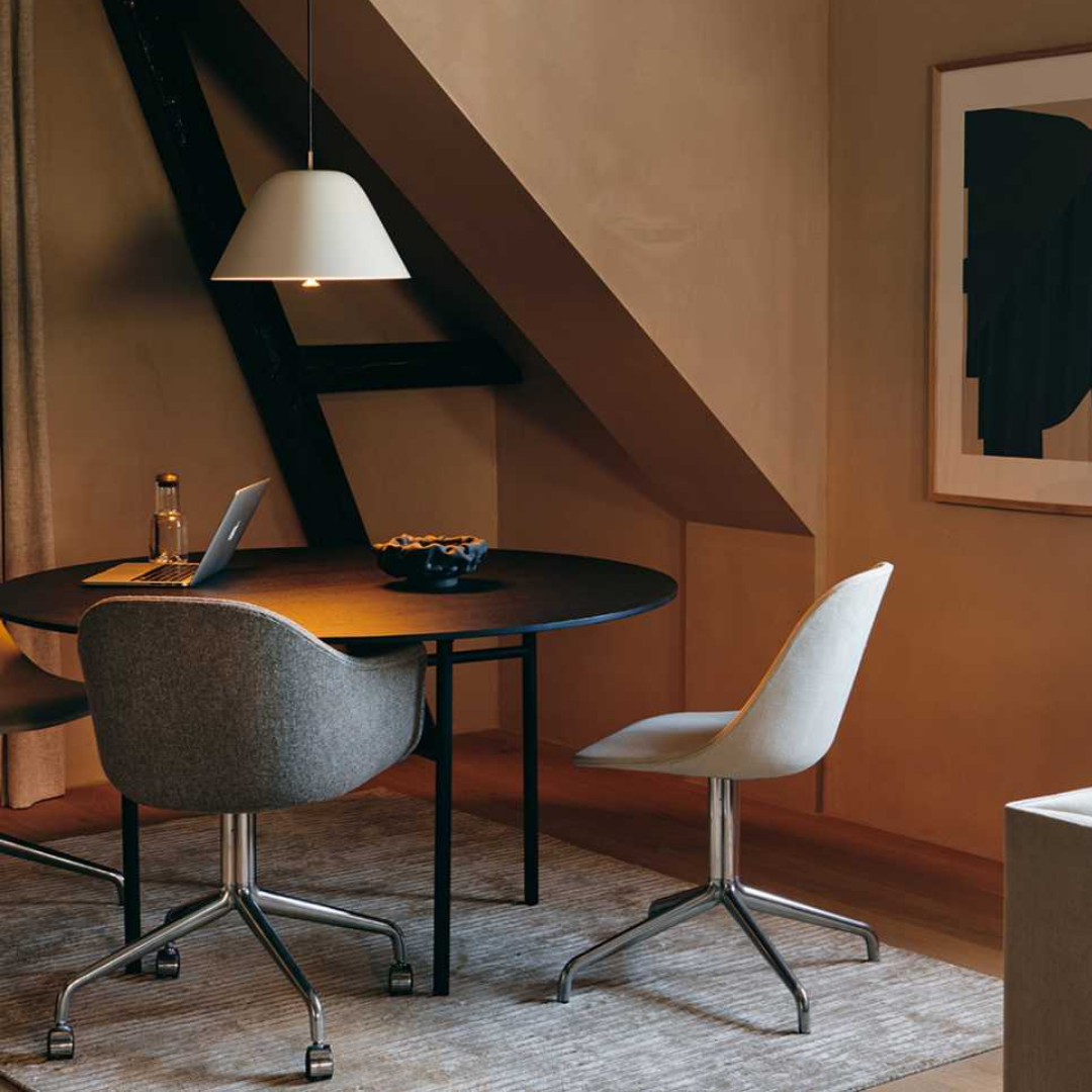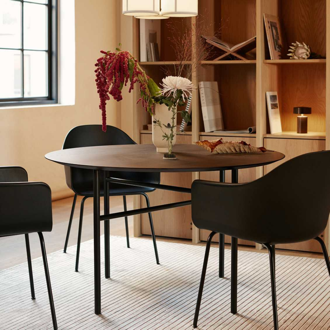 De Snaregade-tafels van Menu hebben een elegant, grafisch ontwerp dat deze wellicht een toekomstige klassieker kan worden! Ze hebben een eenvoudig bovenblad van eikenfineer of linoleum en delicate stalen poten die zo zijn geplaatst dat ze voldoende beenruimte bieden. De Snaregade tafels zijn uitermate stijlvolle werktafels / eettafels en passen in zowel klassieke als moderne interieurs.