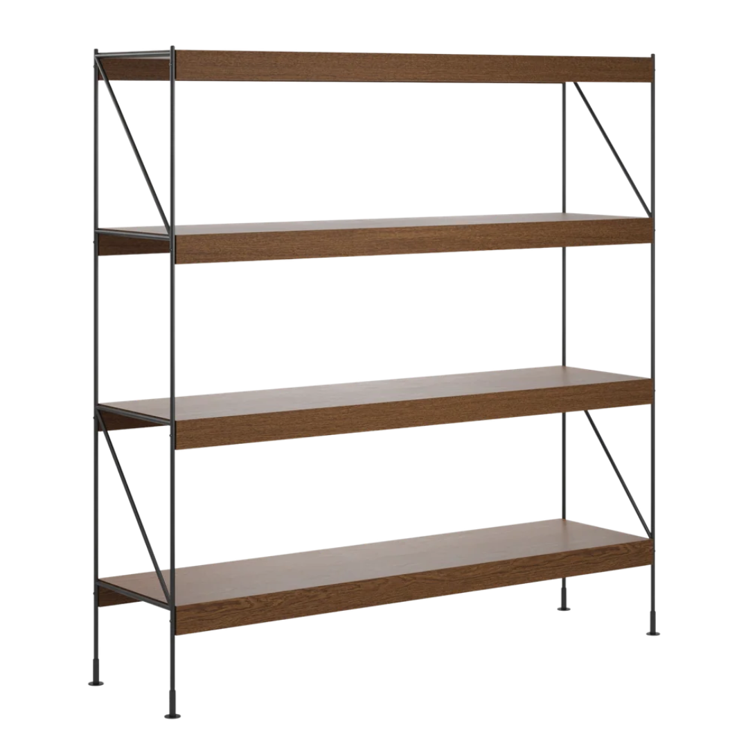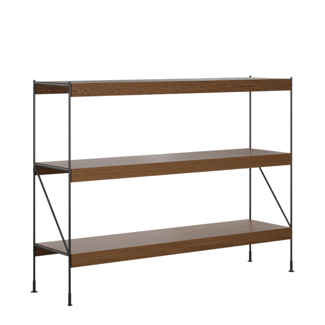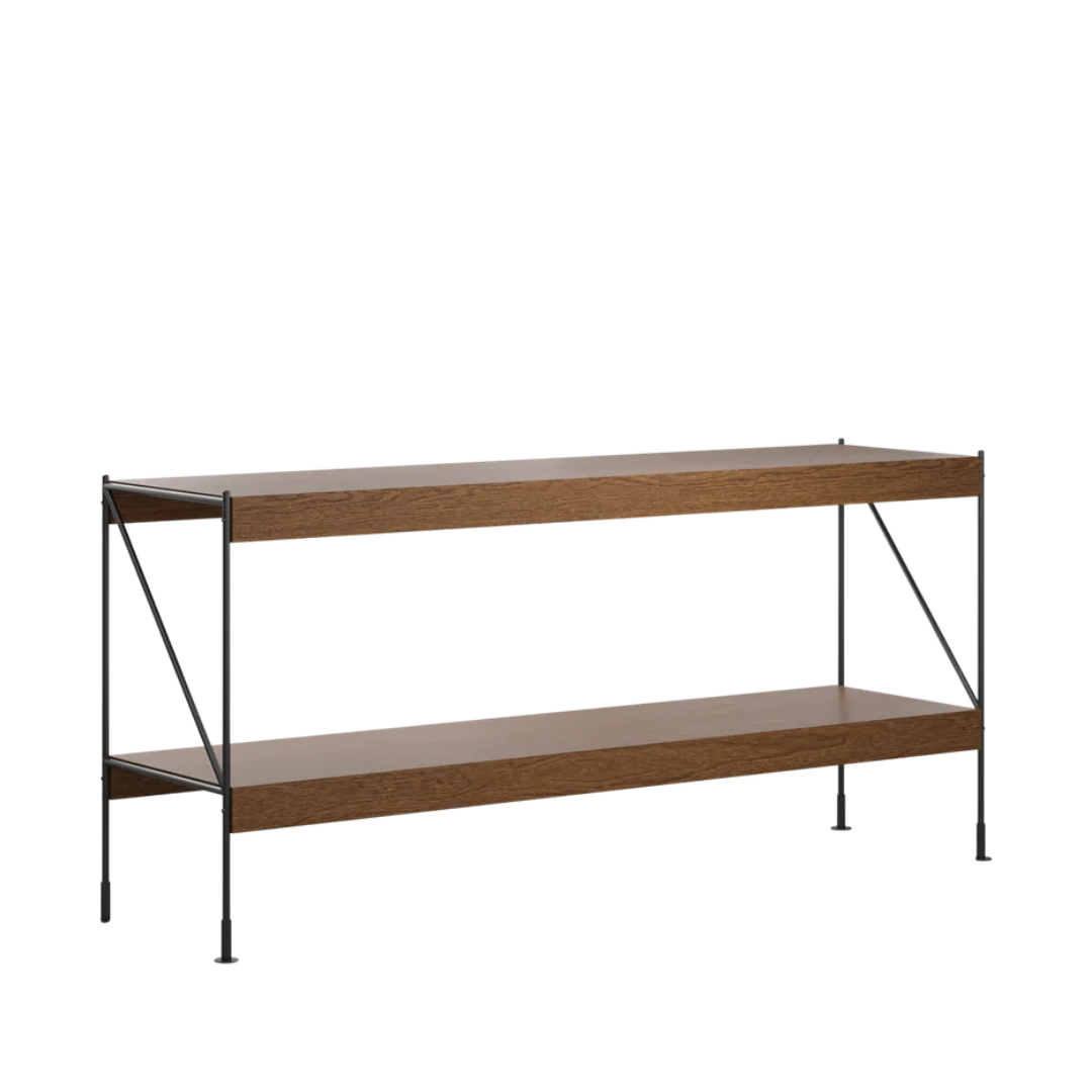 Materiaal: powder coated zwart staal, donker eiken veneer over het MDF.