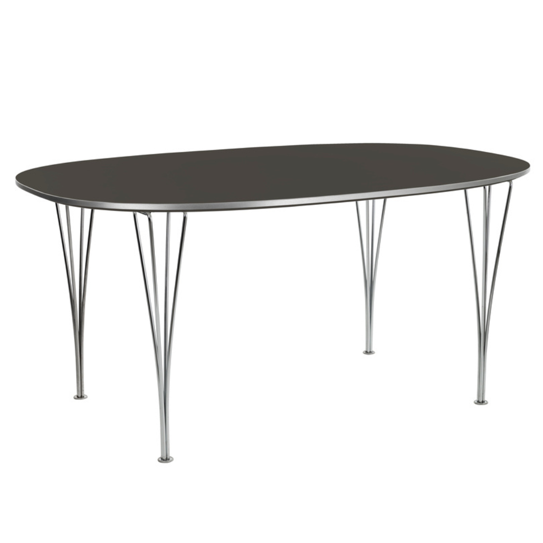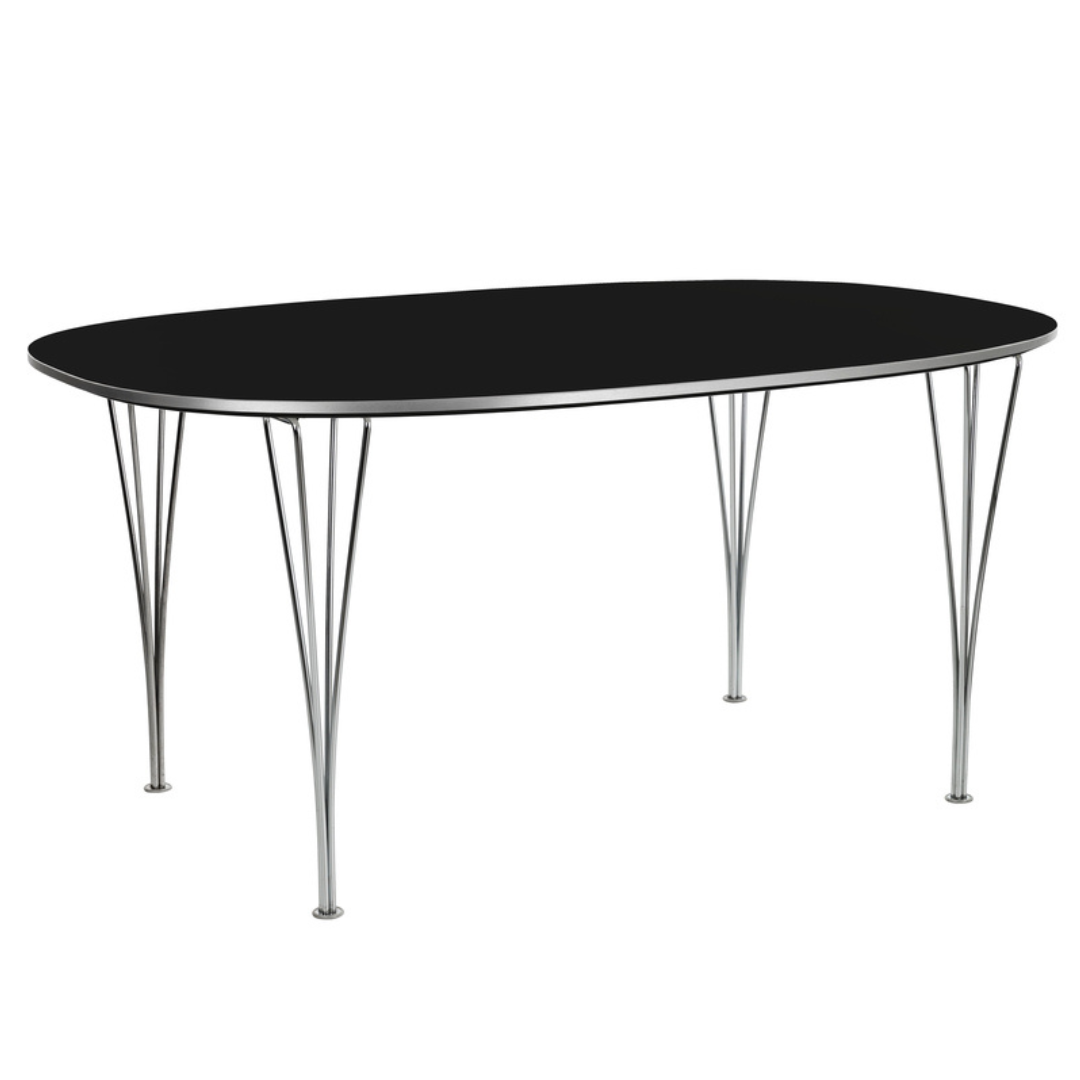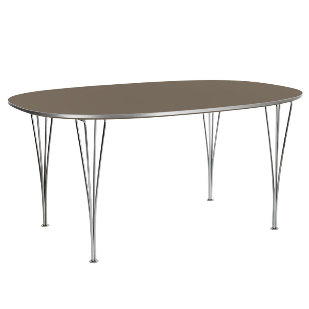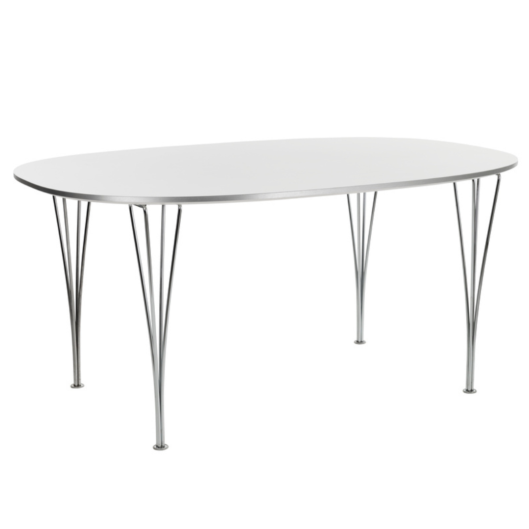 De moderne en luchtige B613 Superellipse tafel van Fritz Hansen is ontworpen door designers Piet Hein & Bruno Mathsson en bekend om zijn iconisch onderstel.