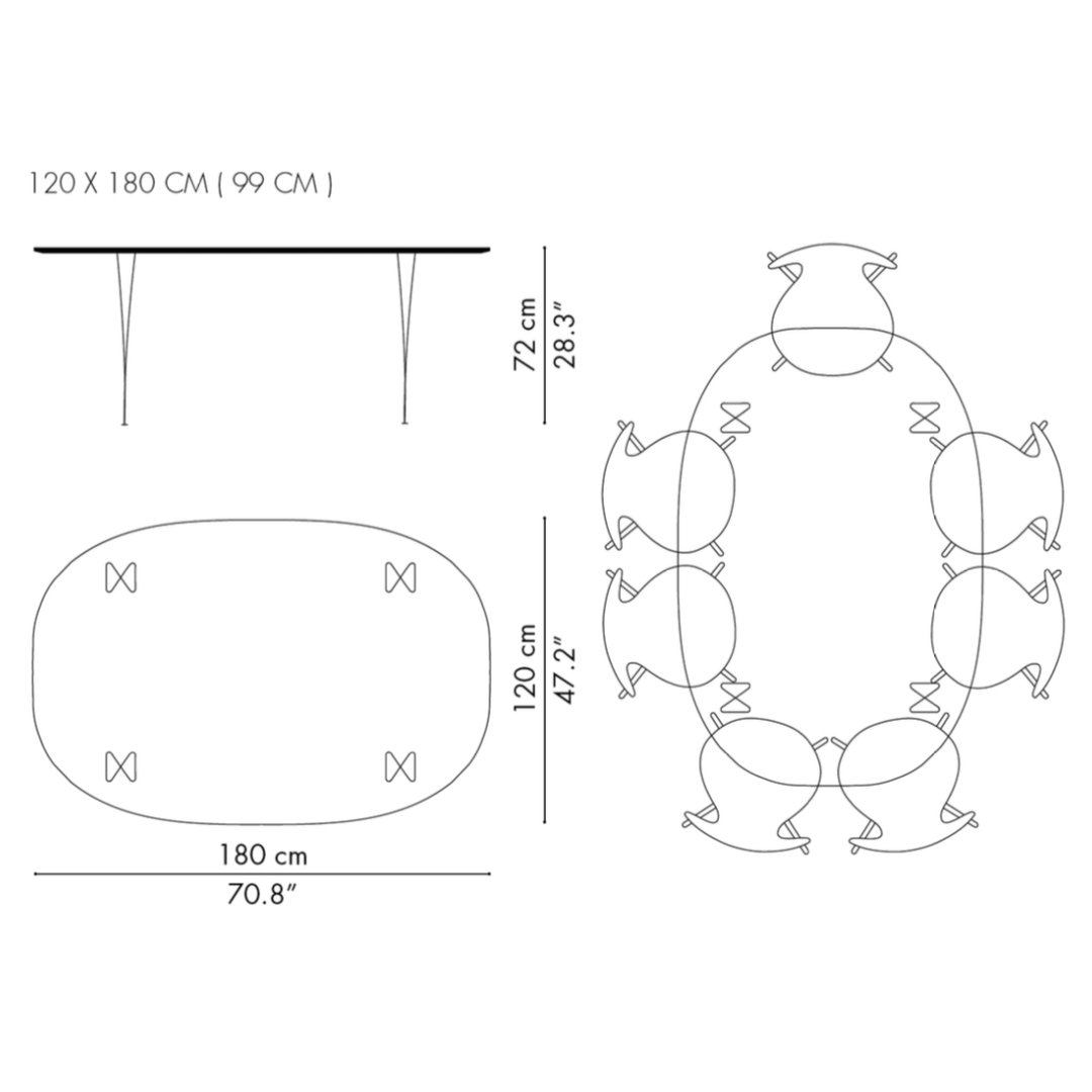 De B613 Super-Elliptic Table 180 cm is een enorm veelzijdig en ongelooflijk duurzaam meubelstuk en een designklassieker. Deze tafel is eventueel perfect te combineren met zes Series 7 stoelen, eveneens ontworpen door Arne Jacobsen voor Fritz Hansen.