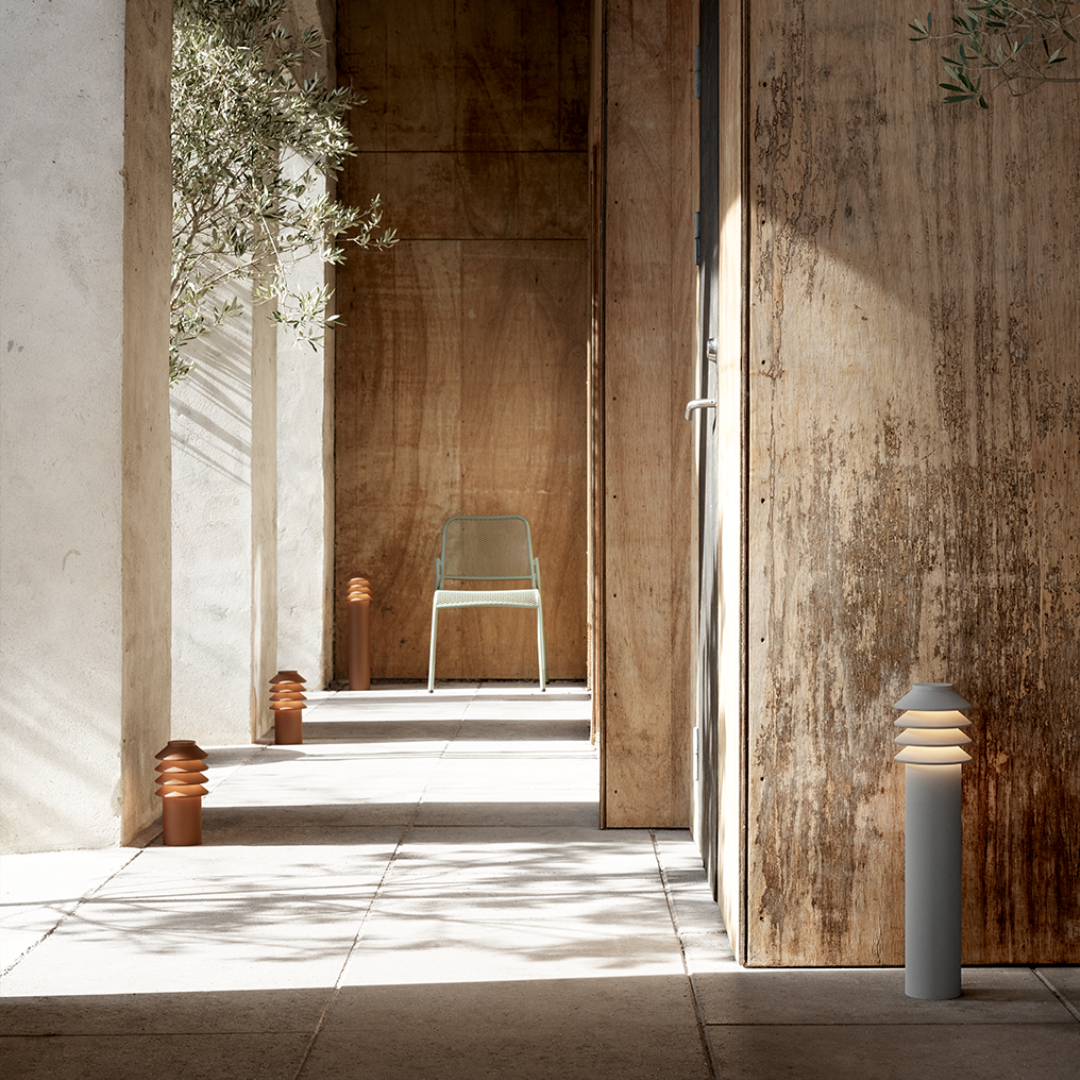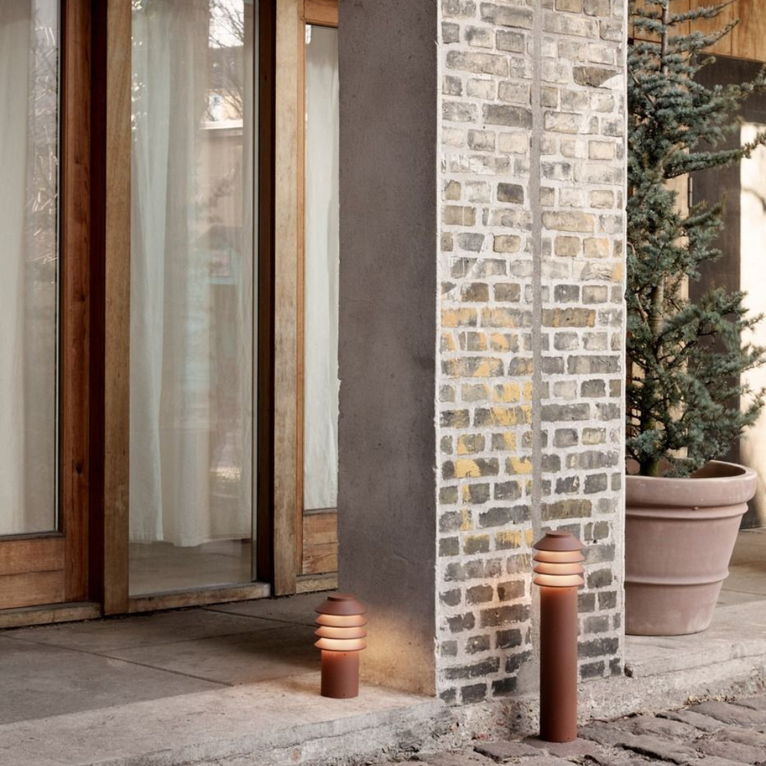 Het idee achter het ontwerp van de bolder was om de schermen op zo’n manier te plaatsen dat er een interessant patroon op de grond zou ontstaan. De keuze voor cortenstaal als materiaal was destijds revolutionair, en vormt nog steeds een belangrijk onderdeel van de identiteit van het product. Bysted Garden is een bijna identieke, kleinere versie van de originele Bysted-bolder, die gemakkelijk kan worden geplaatst voor betere lichtkwaliteit in commerciële en residentiële buitenruimtes.
