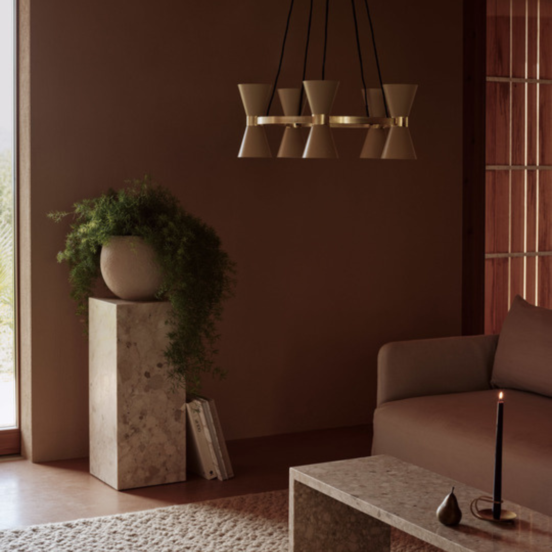 De luxueuze messing details bekronen het verfijnde uiterlijk van de lamp en aangezien het in de loop van de tijd patineert, draagt dit in de loop van de tijd bij aan de elegantie van de hanglamp.
