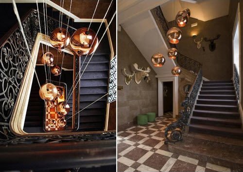 Een versterkend effect kan worden bereikt door de lamp in asymmetrisch clusters op te te hangen.