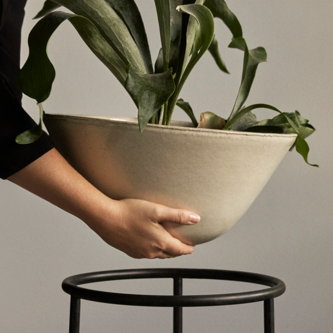 Geïnspireerd door oude amforen, is de Daiza plantenbak gevormd uit steengoed en afgewerkt met een glanzend, reactief glazuur dat het ontwerp een prachtige diepte van kleur en textuur geeft. De plantenbakken staan op ijzeren voeten, waardoor ze in clusters kunnen worden gegroepeerd. De Daiza Planter is gemaakt voor gebruik binnenshuis!, en kan ook buiten worden gebruikt als de richtlijnen die bij de aankoop zijn geleverd, worden gevolgd. Verkrijgbaar in vier maten.