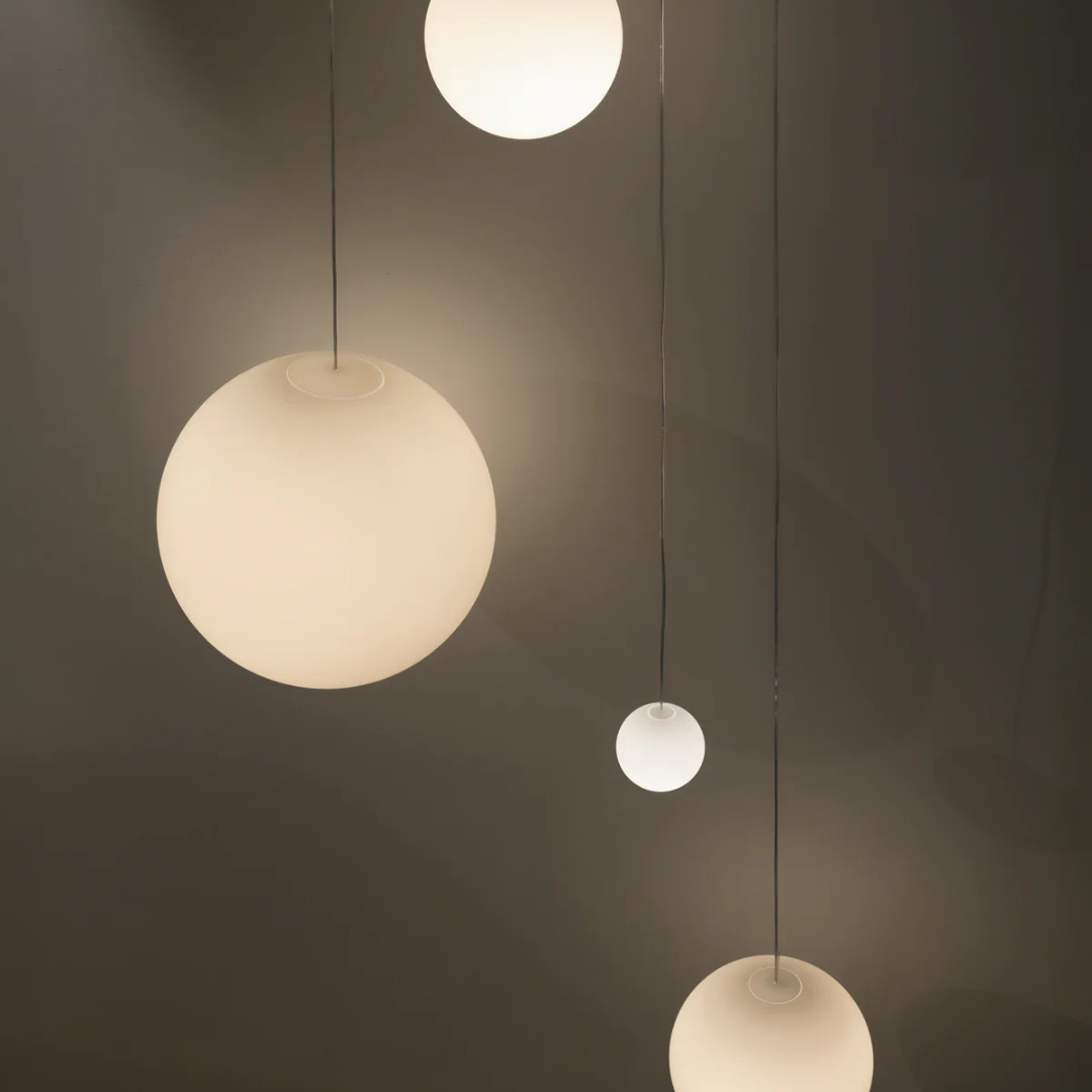 De Luna hanger is ontworpen om het glanzende plastic deksel dat kabels verbergt en het ophang mechanisme te laten verdwijnen. De Luna is volledig gemaakt van glas, zelfs de deksel. De lichtbron hangt aan een acrylkruis dat is ontworpen om het licht er doorheen te laten schijnen.