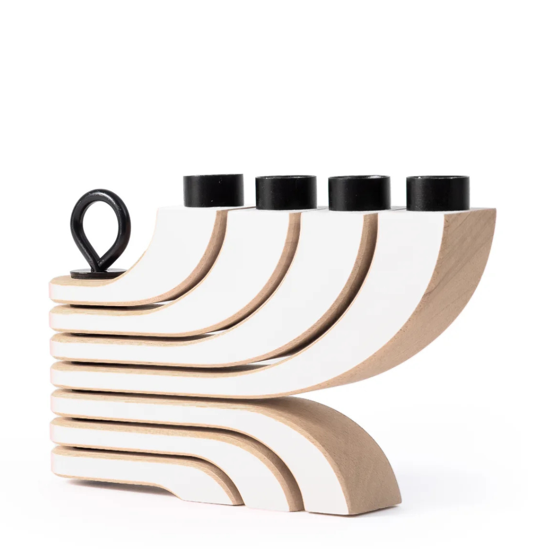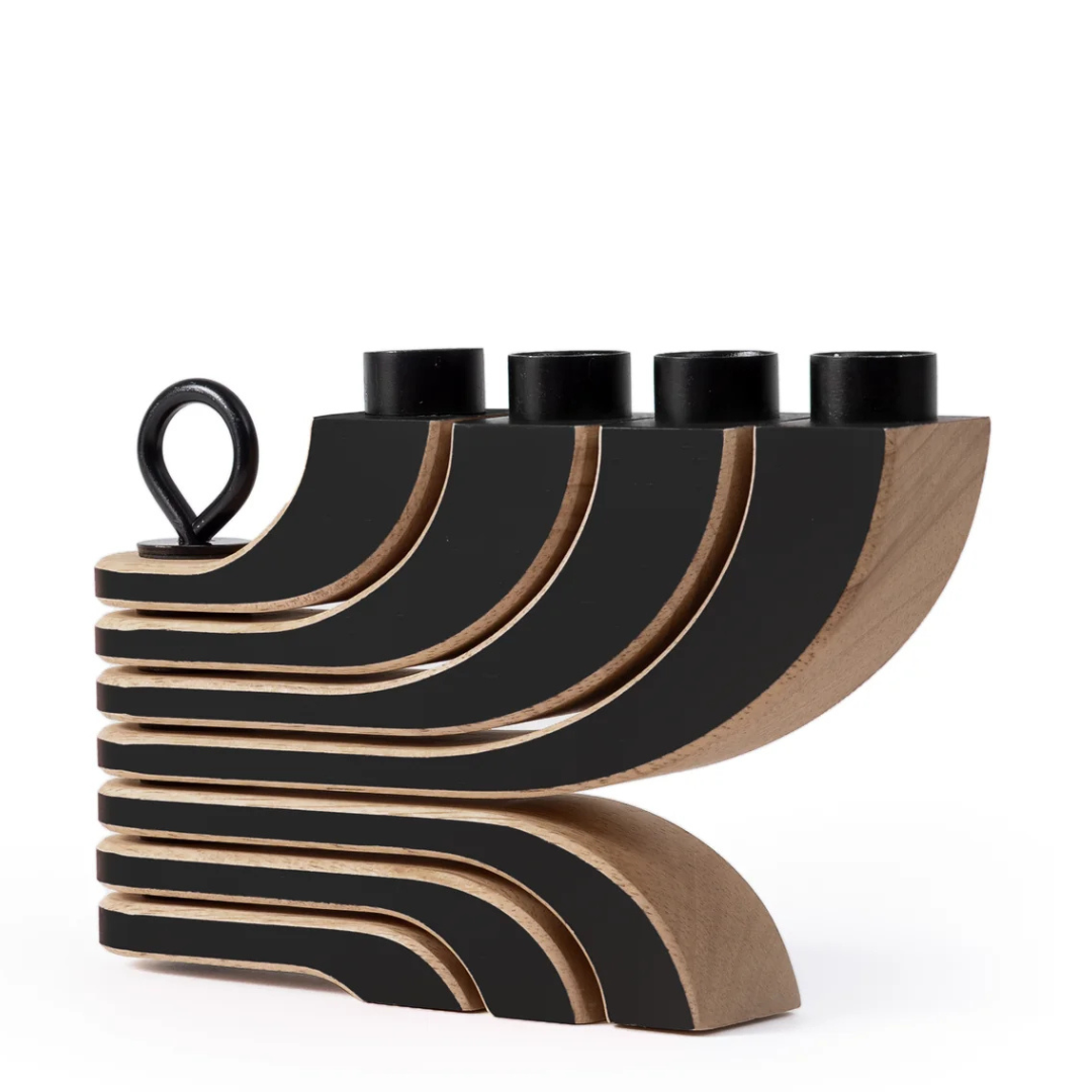 Nordic Light kandelaar, een prachtig ontwerp van Jonas Grundell uit 1998. Inmiddels een echt Scandinavisch icoon. Een mooie combinatie van rubberhout en zwart metalen ring die alle onderdelen in de gewenste stand houdt, na het doven van de kaarsen kunt u eventueel de kandelaar in compacte stand terug vouwen. Deze mooie kandelaar is er ook in een 7 arm versie in het wit.