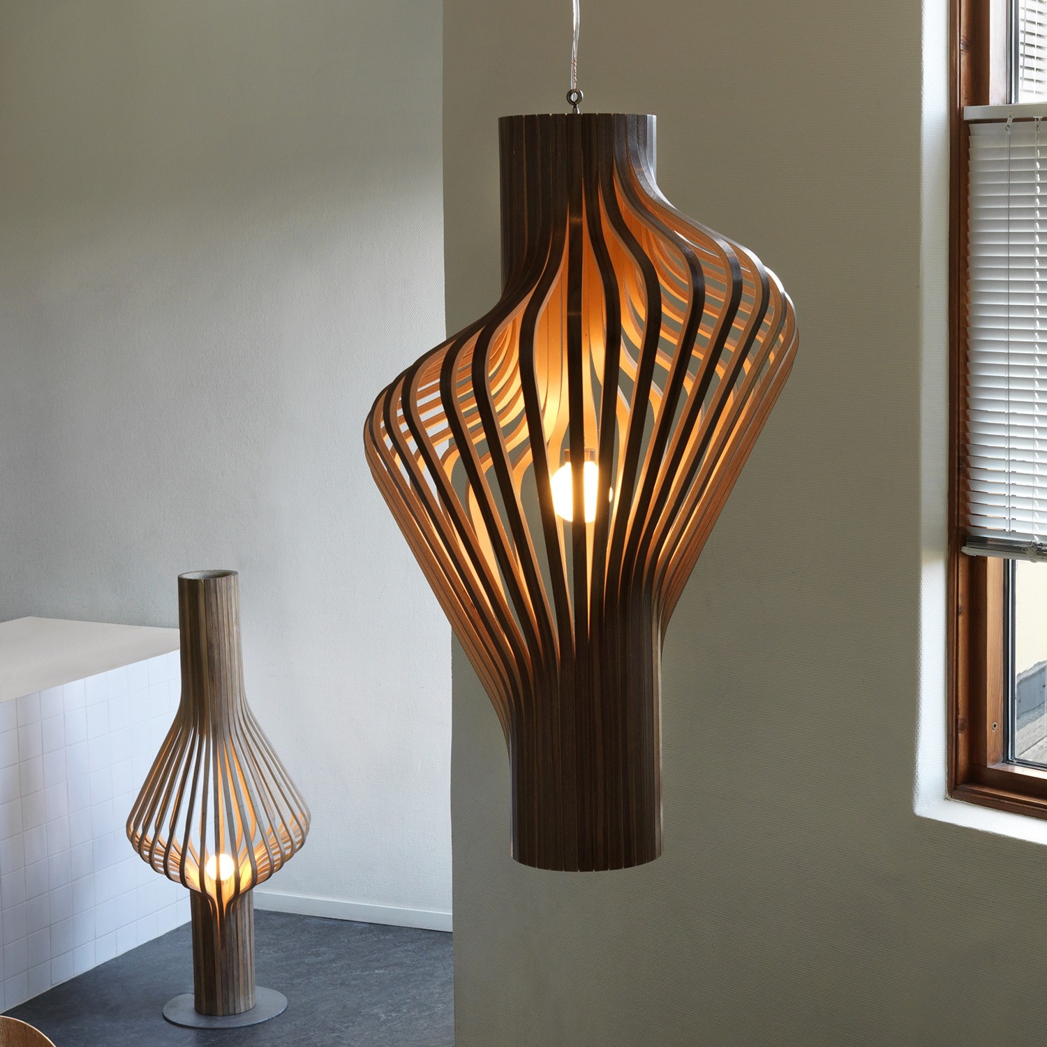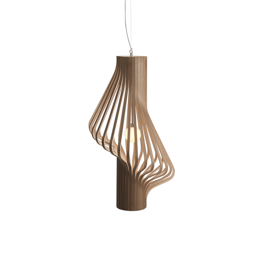 De lamp bestaat uit 32 strips van eiken of gerookt eiken hout, waardoor deze lamp een bijzondere en unieke verschijning voor uw interieur.