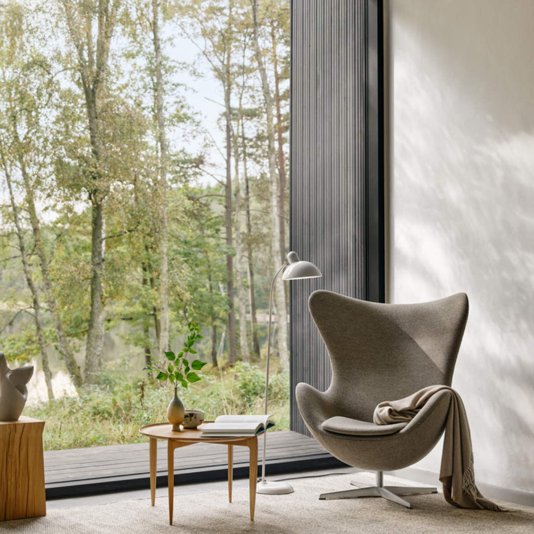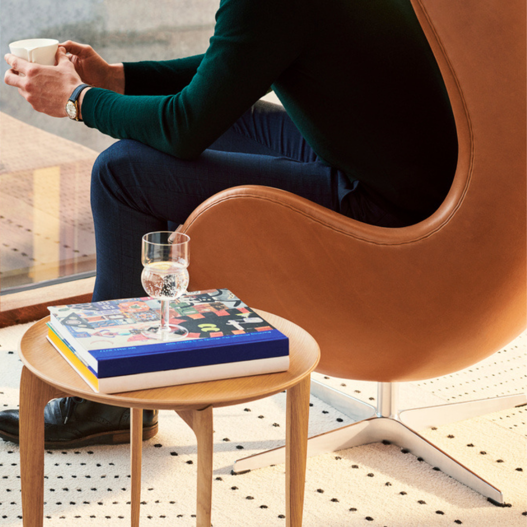 Arne Jacobsen ontwierp de iconische Egg stoel oorspronkelijk voor de hotellobby van het SAS Royal Hotel in Kopenhagen, die ook door hem zelf was ontworpen.