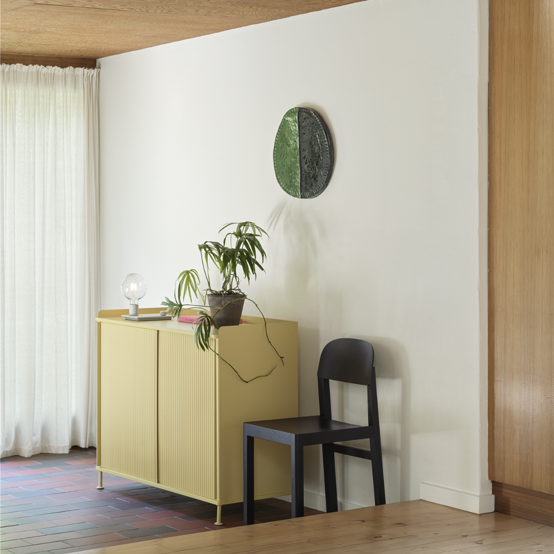Het luchtige uiterlijk van de Enfold is een aanvulling op zowel huizen als kantoren en vindt gemakkelijk zijn plaats in woonkamers, keukens en gangen. De lage Enfold dressoir heeft één metalen plank die op elke gewenste hoogte achter de schuifdeuren kan worden geplaatst.