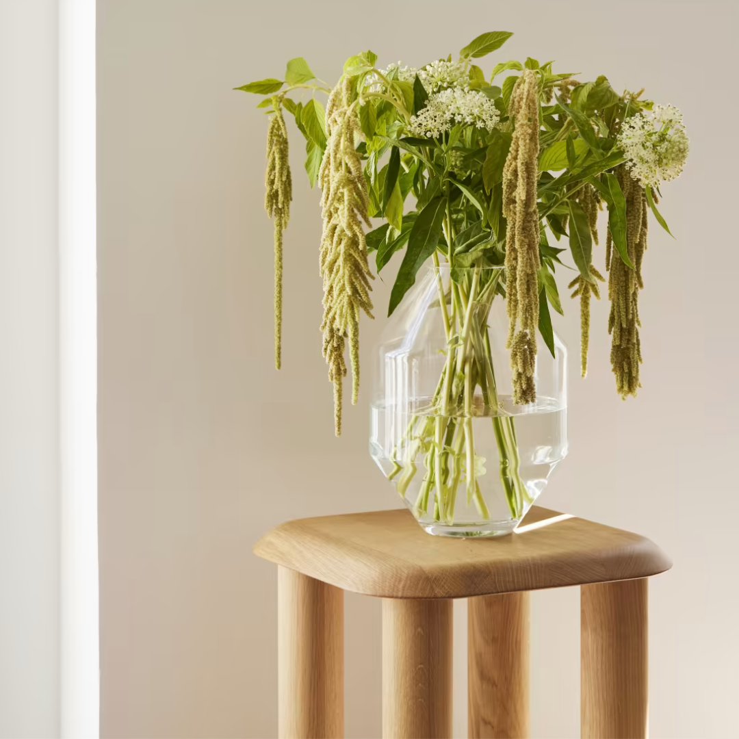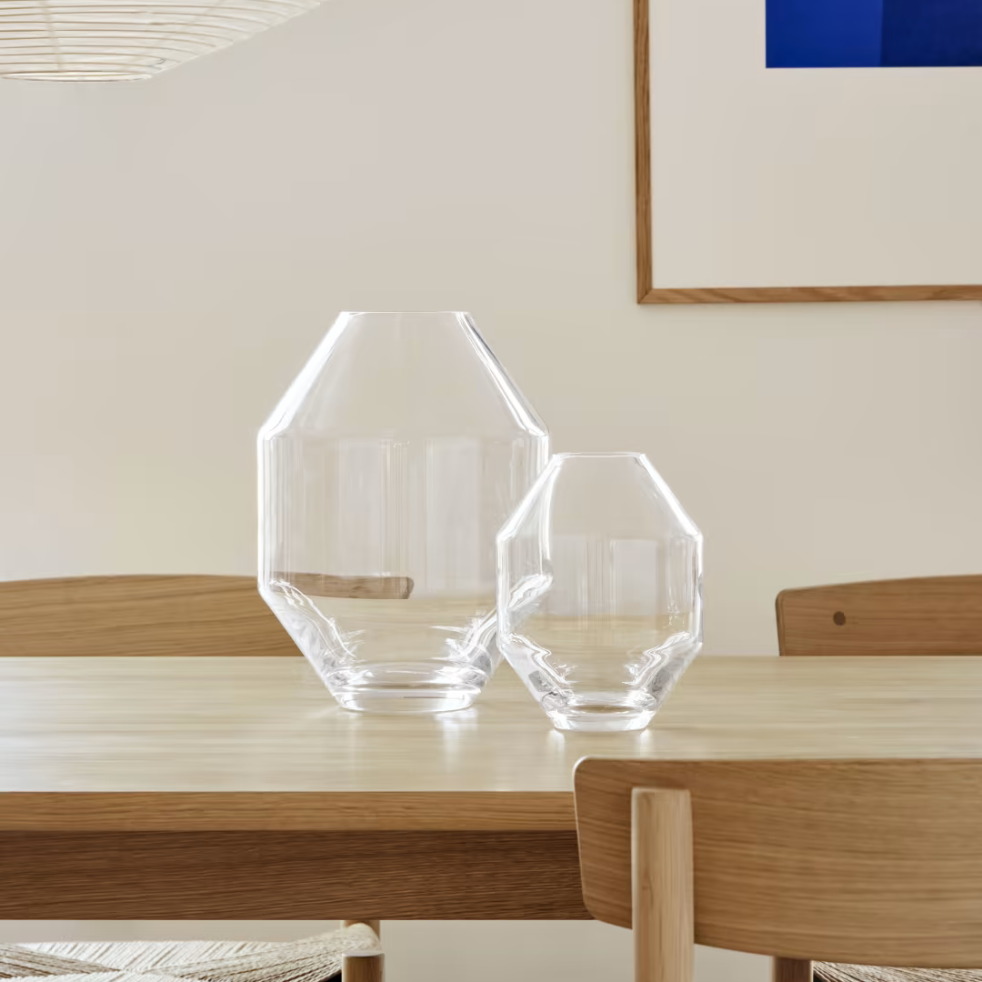 De Fredericia Hydro vaas is Sofie's Østerby moderne interpretatie op de bekende vazen uit de Griekse Oudheid, na keramiek en messing nu beschikbaar in Kristal glas.