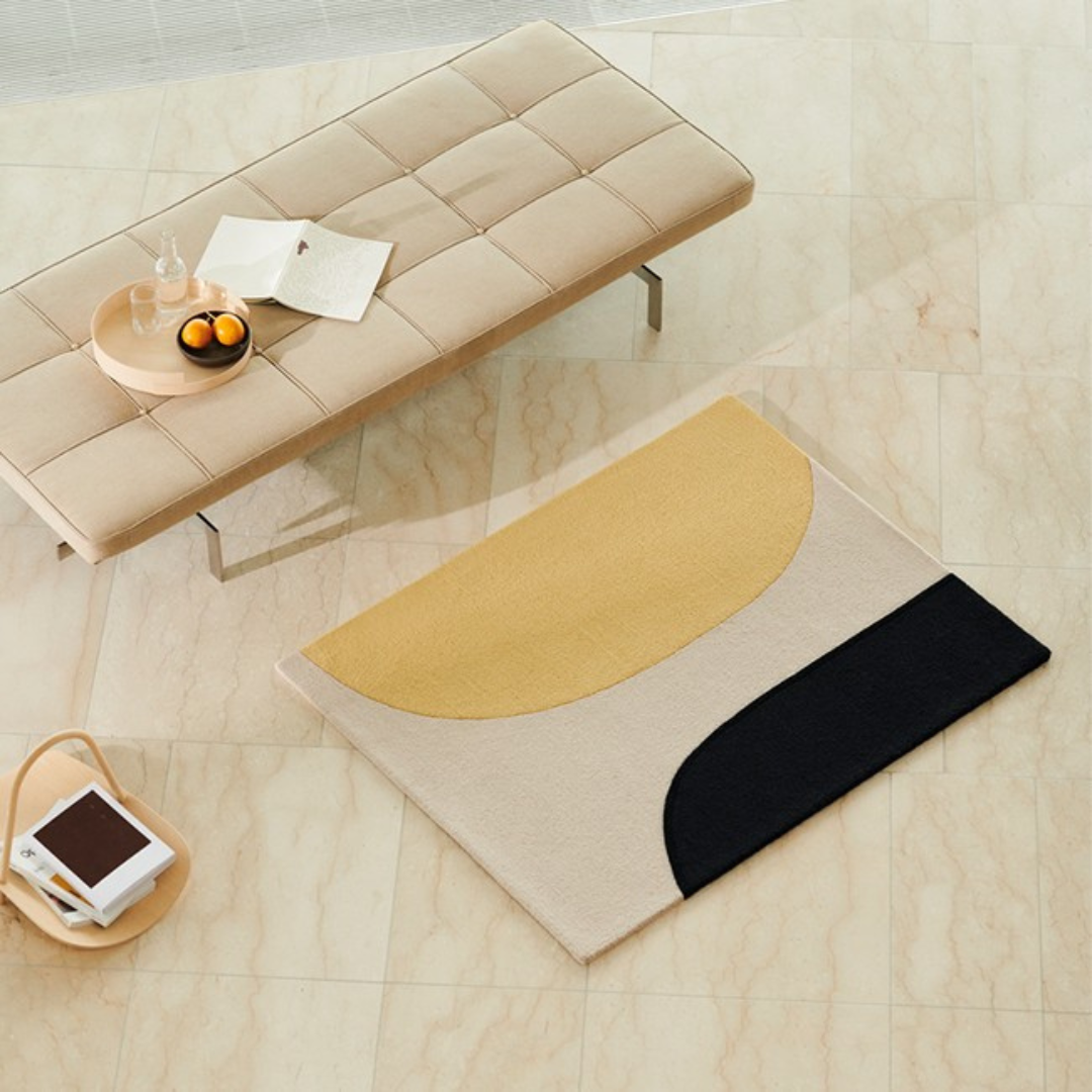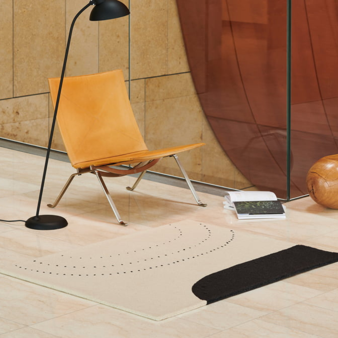 Het eigentijdse Balance vloerkleed van Cecilie Manz heeft een decoratieve stippen en kleurblokken patroon, en geeft elke ruimte een vleugje moderniteit.
