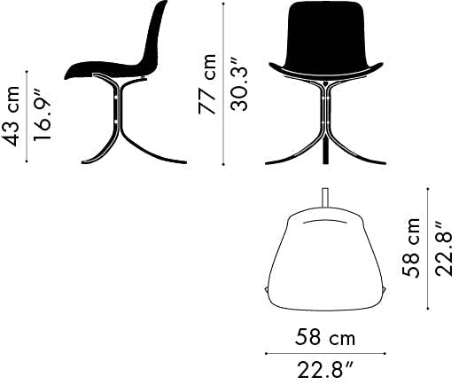 Poul Kjærholm kwam op het idee van de drie potige stoel tijdens een mooie dag op het strand een zag de zanderige voetafdruk die zijn vrouw had achtergelaten in het zand.