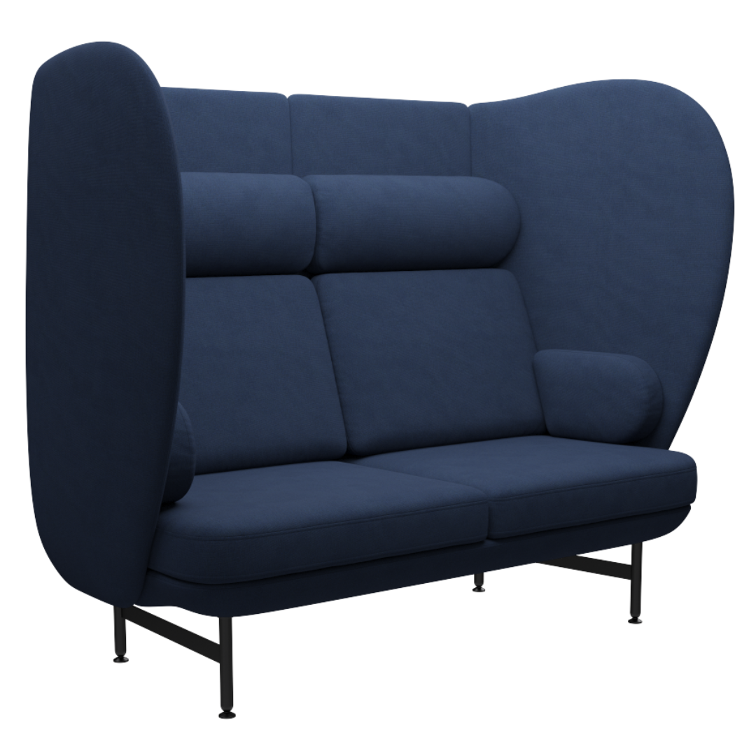 De eigentijdse bank van Jaime Hayon kan dankzij de hoge rugleuning functioneren als praktische en productieve room-divider, perfect voor privé- of kantoorruimtes.