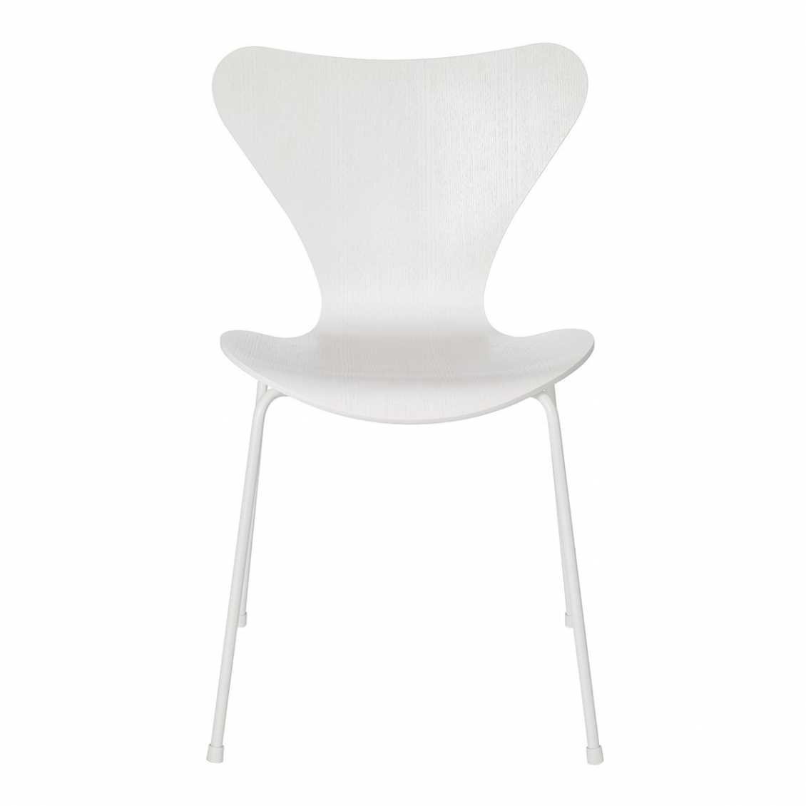 De monochrome in verschillende uitvoeringen verkrijgbaar. U kunt kiezen voor gekleurd essen uitvoeringen in de kleuren wit of zwart. De natuurlijke houtnerf is bij deze uitvoeringen aanwezig. U kunt ook kiezen voor een wit of zwart gelakte versie waarbij de zitschaal een eegalen afwerking heeft en de houtnerf niet zichtbaar is ,de series 7 is een echt icoon van eigentijds design, perfect om rond uw eet/keukentafel te gebruiken.