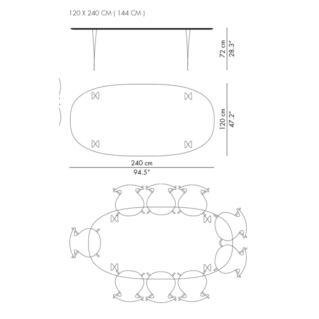 De B614 Super-Elliptic Table 240 cm is een enorm veelzijdig en ongelooflijk duurzaam meubelstuk en een designklassieker. Deze tafel is eventueel perfect te combineren met zes Series 7 stoelen, eveneens ontworpen door Arne Jacobsen voor Fritz Hansen.