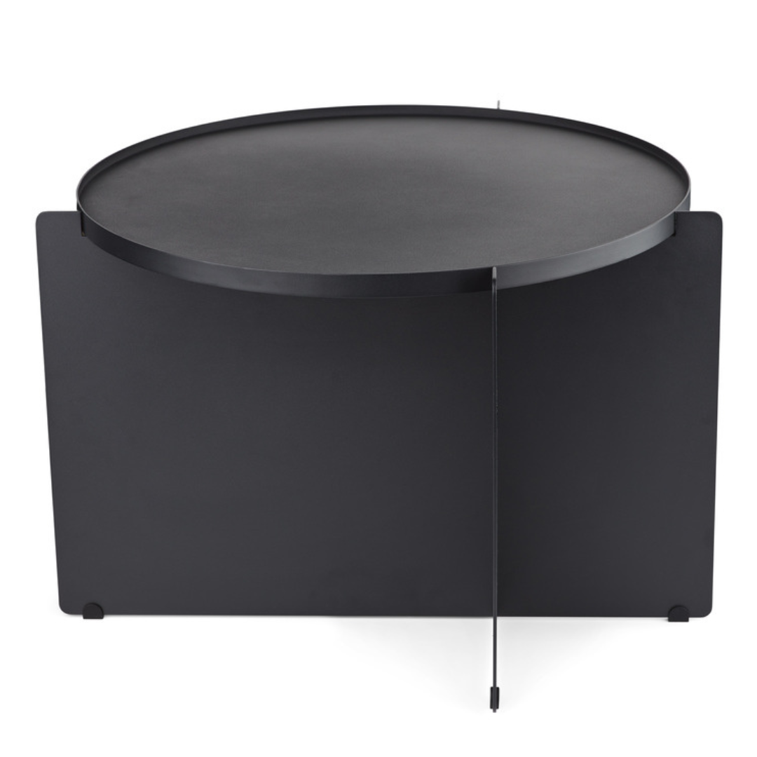 De Gejst Svip Tray Table is opgebouwd uit twee asymmetrische aluminium platen en heeft een afneembaar rond dienblad wat bijzonder functioneel bij het brengen en afruimen van uw drankjes,  de tafel vakkundig technische goed doordacht en heeft ook mooie architecturale kwaliteiten.