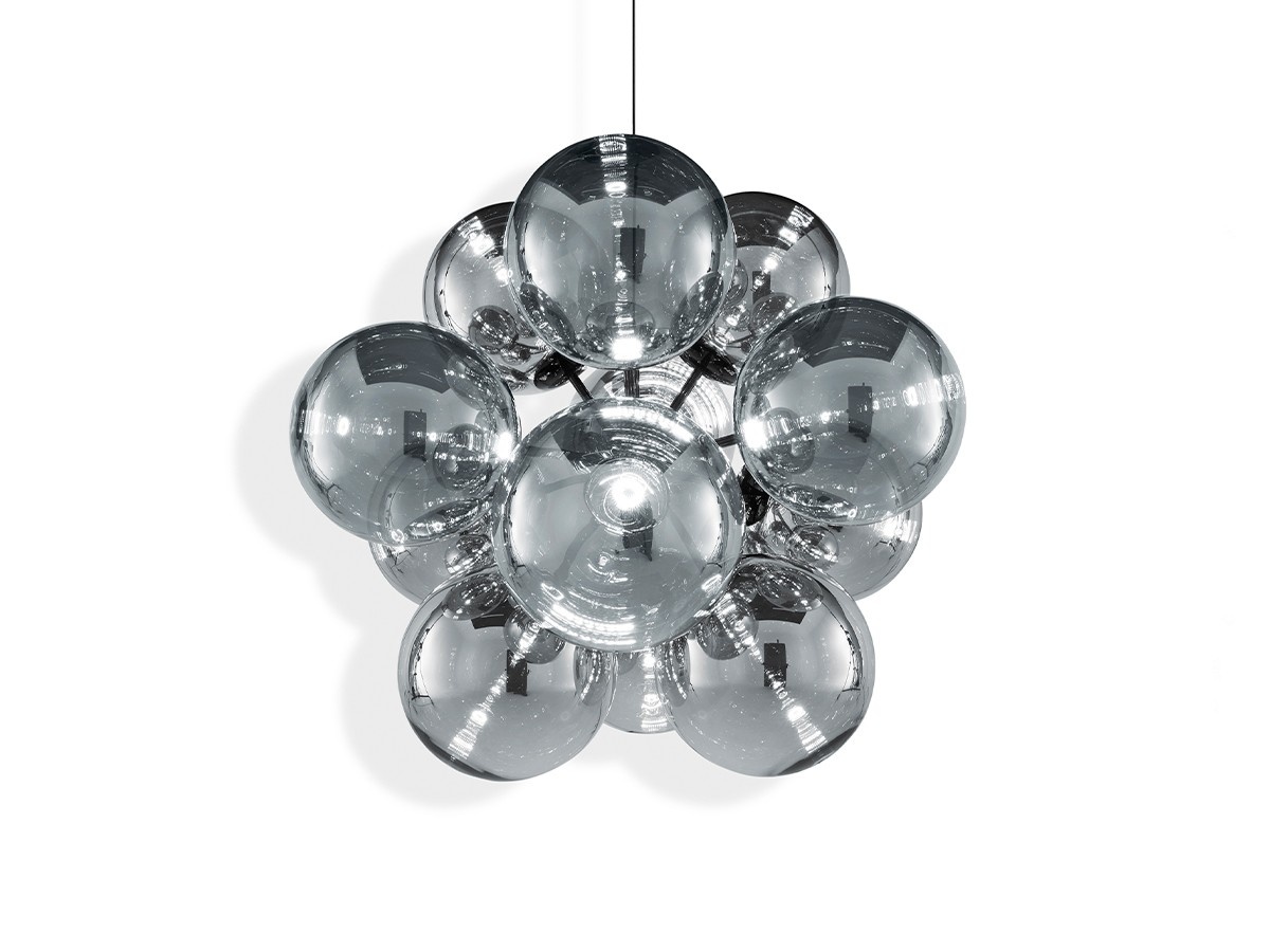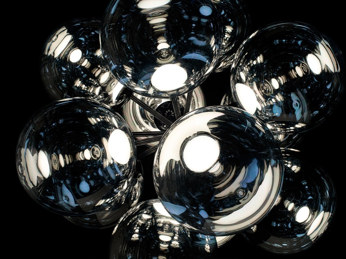 Hoewel beschikbaar als een enkele hanglamp, verbindt de Burst Chandelier twaalf lichtbollen vanuit een enkel punt, waardoor een indrukwekkende compositie van indrukwekkende proporties ontstaat.