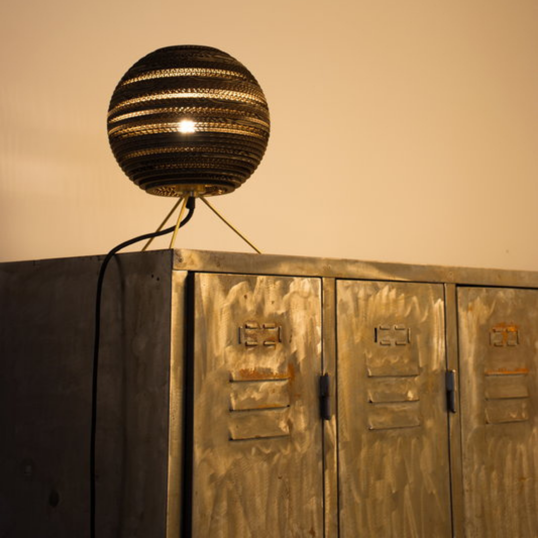 Moon maakt deel uit van de Scraplights collectie van Graypants met opvallende armaturen van golfkarton. Het op maat gemaakte materiaal wordt met de laser gesneden en met de hand in de gewenste vorm geassembleerd, met behulp van een niet-giftige lijm, en afgewerkt met een niet-giftige vlamvertrager. Uniek en duurzaam vervaardigd, de Scraplights armaturen voegen een natuurlijke, organische toets toe aan elk interieur.