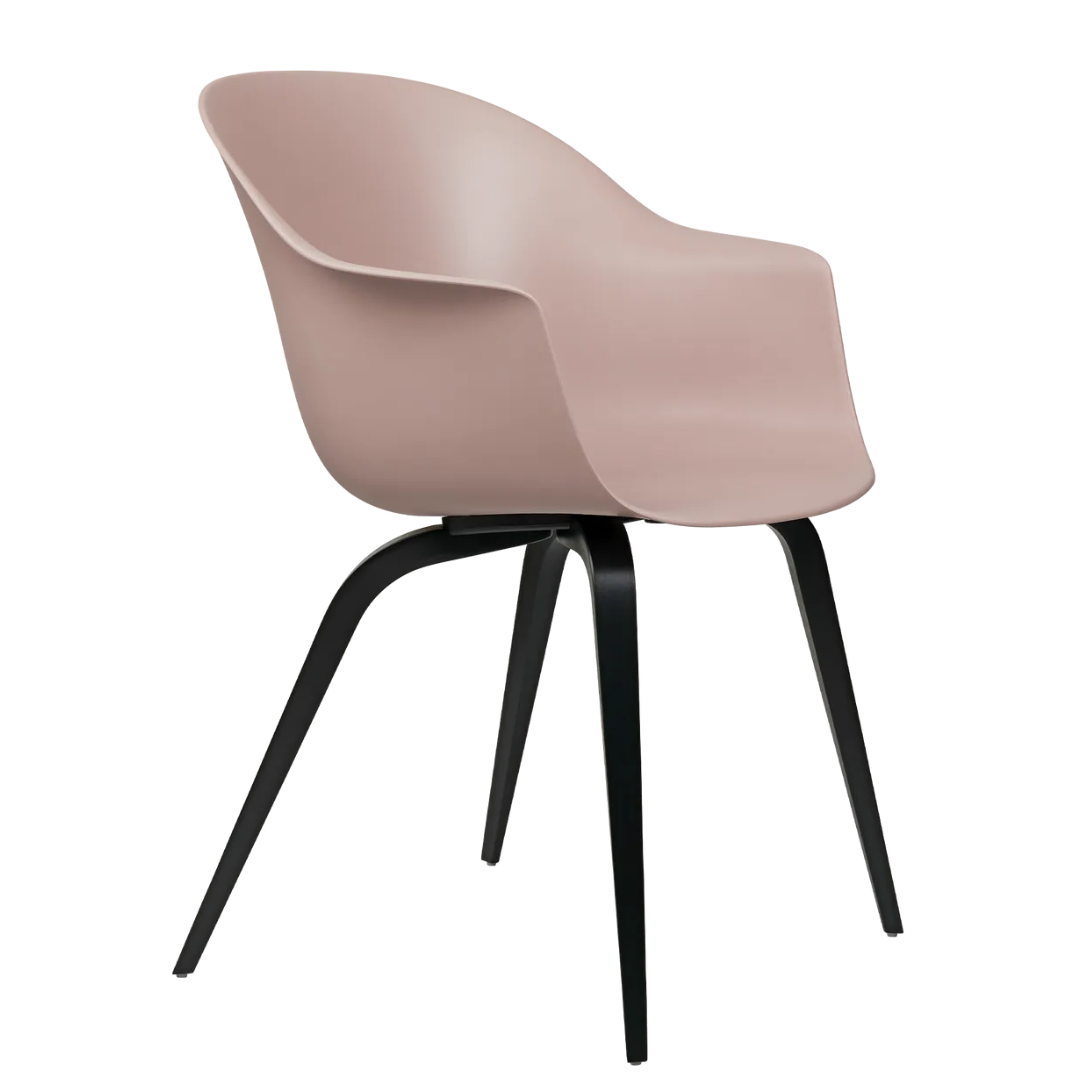 De Bat Dining Chair van het Deense Gubi, is ontworpen door het Deens-Italiaanse design-duo Gam Fratesi, Het ontwerp heeft een referenties naar de kenmerken van vleermuizen, met zijn uitnodigende, onderscheidende vorm doet deze denken aan de vorm van de vleugel van een vleermuis.