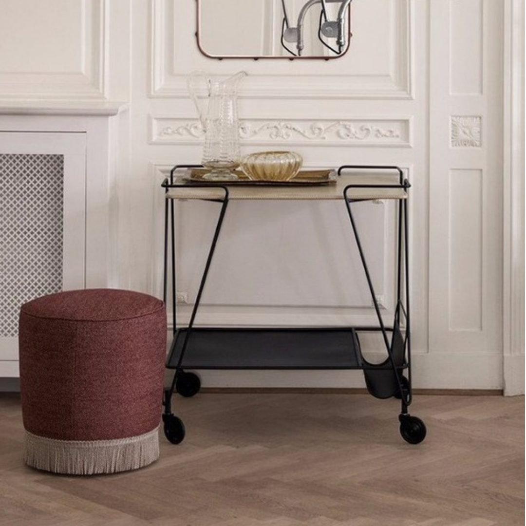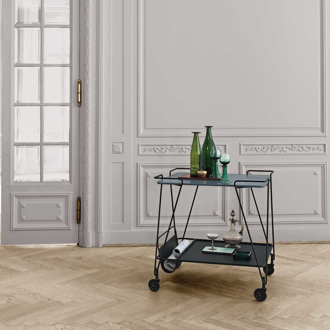 De Gubi Trolley is een prachtige theewagen uit de Matégot serie. Dit is duidelijk te herkennen aan het slanke buizenframe en het geperforeerde metaal.