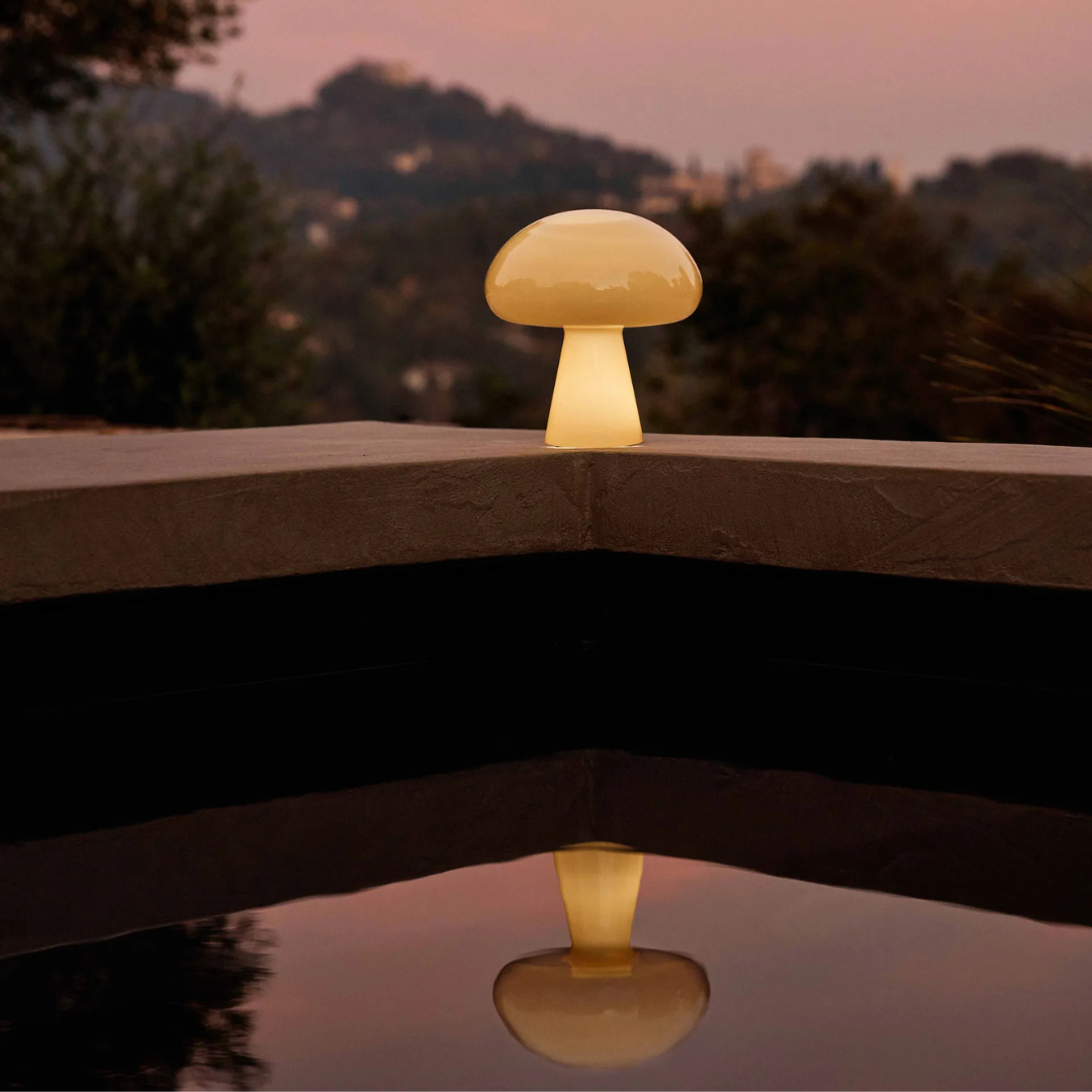 Ideaal ontwerp voor uw tuin, balkon maar ook in de  hal, woonkamer of op de eettafel, de organische uitstraling met het karakter van een paddestoel geeft stijl en karakter aan de ruimtes waar deze ook staat.