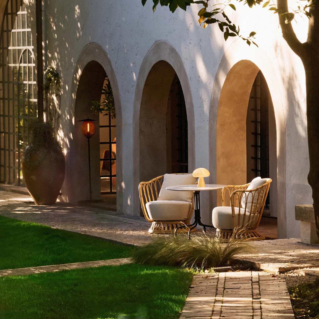 De lamp is licht van gewicht en draagbaar, de Gubi Obello Outdoor Tafellamp van Amerikaanse designer Bill Curry uit 1971 heeft ook een sprekend silhouet, en innovatief samengesteld uit een enkel stuk mond-geblazen glas. Met een accu die lang meegaat en tot 40 uur licht geeft, kan hij zowel binnen als buiten worden gebruikt en is hij bestand tegen een enkele regenbui, zand en aarde.