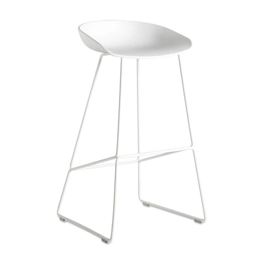 De Hay About a Stool AAS 38 heeft een zitting die vervaardigd is uit polypropyleen in de kleur zwart, brick, concrete grijs, crème wit, dusty blauw, dusty groen, grijs, hunter, khaki, oranje, pastel groen, soft zwart, warm rood en wit. Ondanks zijn slanke metalen onderstel, staat deze barkruk bijzonder stevig op de vloer.