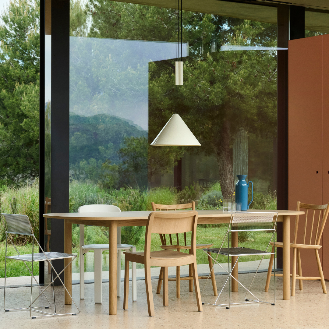 De Annex Table Oblong, ontworpen voor HAY door John Tree, combineert evenwichtige proporties met architectonische kracht en creëert zo een veelzijdige tafel die zich naadloos aanpast aan elke ruimte of situatie. Het rechthoekige ontwerp bestaat uit een frame en buisvormige poten van massief eikenhout of aluminium, afkomstig van ten minste 75% gerecycled post-consumer schroot en geëxtrudeerd in Europa. De tafel is verkrijgbaar in diverse tafelbladen, waaronder Kvadrat's Really Textile Tabletop™, gemaakt van 70% afgedankt textiel. Het weloverwogen materiaalgebruik en de verschillende afmetingen maken de tafel een praktische en uitnodigende keuze voor de meeste huiselijke omgevingen – ideaal om te dineren, werken en socializen.