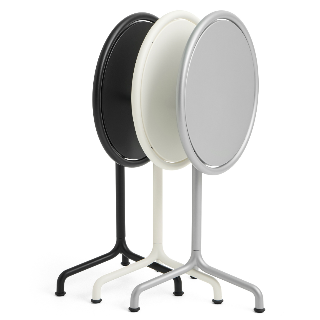 De Deville bistrotafel Ø55 cm, ontworpen door Julien Renault voor HAY Outdoor, is een eigentijdse herinterpretatie van de klassieke bistrotafel, afgestemd op het moderne buitenleven. Met zijn compacte formaat, zacht gebogen frame en evenwichtige proporties straalt de tafel een open en uitnodigend karakter uit.
