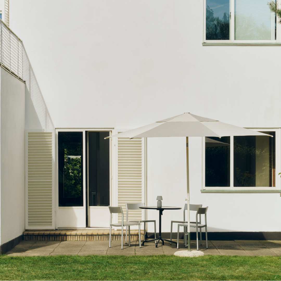 De Deville bistrotafel Ø80 cm, ontworpen door Julien Renault voor HAY Outdoor, is een eigentijdse herinterpretatie van de klassieke bistrotafel, afgestemd op het moderne buitenleven. Met zijn compacte formaat, zacht gebogen frame en evenwichtige proporties straalt de tafel een open en uitnodigend karakter uit.