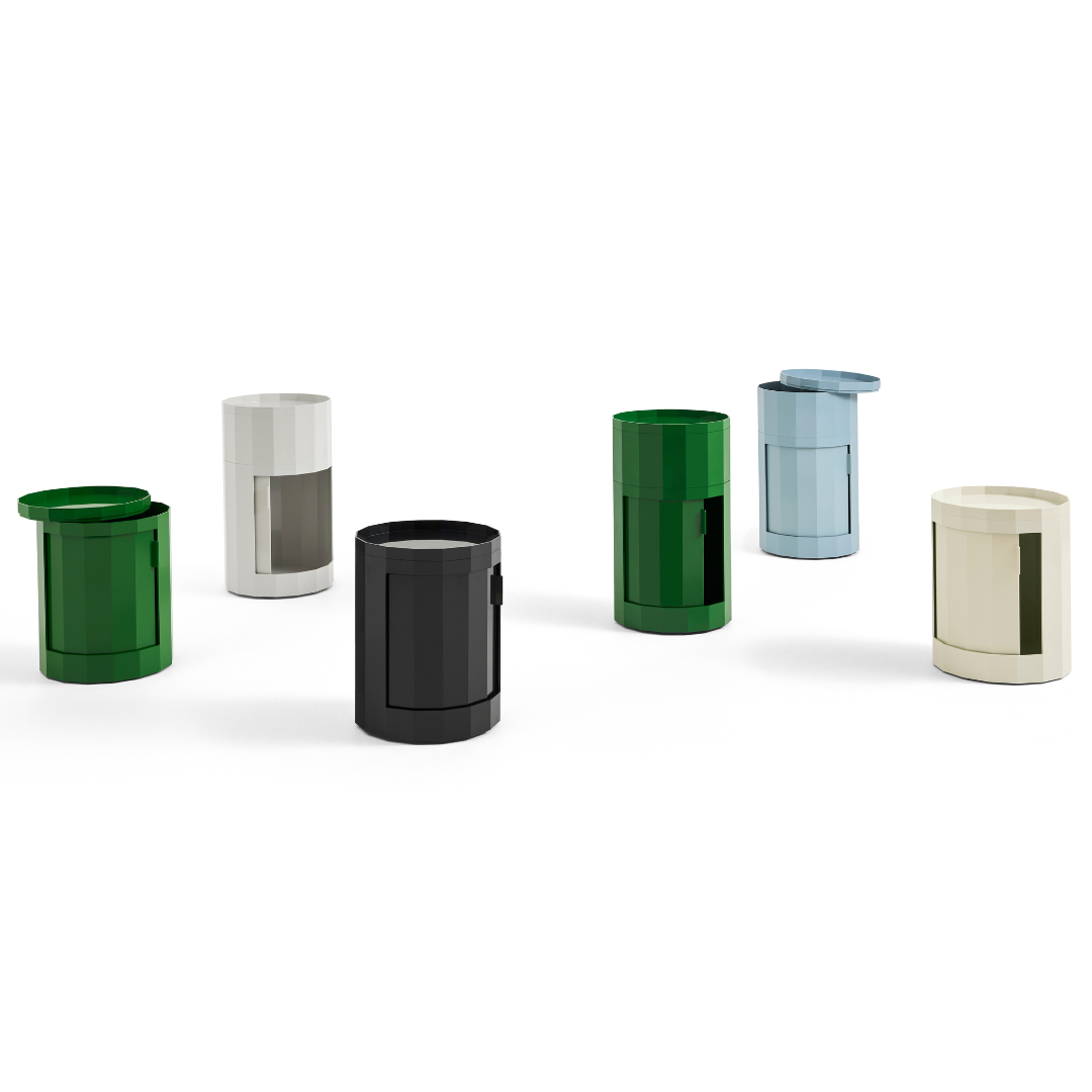 Facet Cabinet, ontworpen voor HAY door de Nederlandse ontwerper Stefan Scholten, is een veelzijdige, multifunctionele opbergoplossing die gemakkelijk te verplaatsen is.