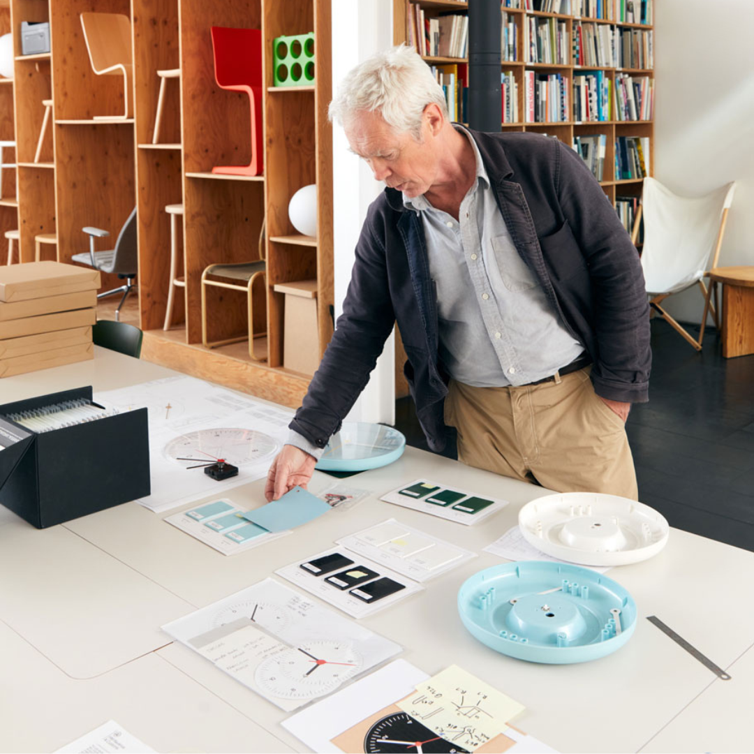 In zijn zoektocht naar het ontwerpen van objecten die naadloos passen in de dagelijkse omgeving, creëert hij eenvoudige maar karaktervolle meubels en huishoudelijke producten voor vele internationale bedrijven. Het eerste product van Jasper Morrison voor HAY is deze iconische wandklok, ontwikkeld in geselecteerde kleuren.