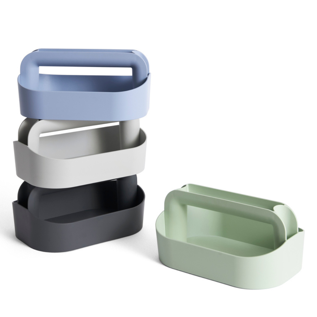 HAY's handige en praktische gereedschapskist is ontworpen door Shane Schneck met extra compartimenten aan de zijkanten en bovenkant van het handvat om de opslagruimte te optimaliseren. Gemaakt van lichtgewicht en toch robuust gerecycled ABS, waardoor het handige ontwerp gemakkelijk door het huis of de tuin kan worden verplaatst. Verkrijgbaar in verschillende veelzijdige kleuren die gemakkelijk te integreren zijn met de omgeving.