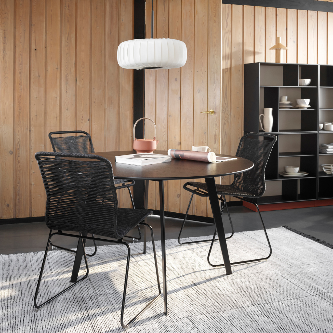 De ronde en moderne tafel is met zijn slanke en lichte uitstraling ideaal voor de eetkamer waarin licht en een ruimtelijke gevoel belangrijk zijn.