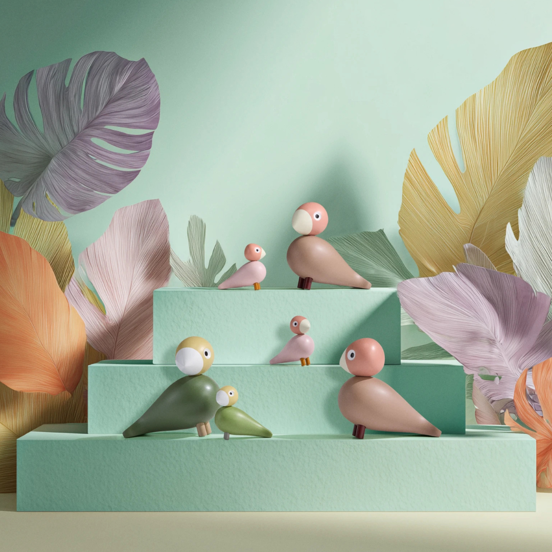 Het iconische ontwerp van Kay Bojesen krijgt in Liv & Lykke een poëtische, dubbele betekenis. De set bestaat uit één grotere en één kleinere vogel, vervaardigd uit FSC®-gecertificeerd beukenhout. Samen vormen ze een krachtig symbool van verbondenheid, maar ook afzonderlijk vertellen ze hun eigen verhaal – passend bij elke levensfase.