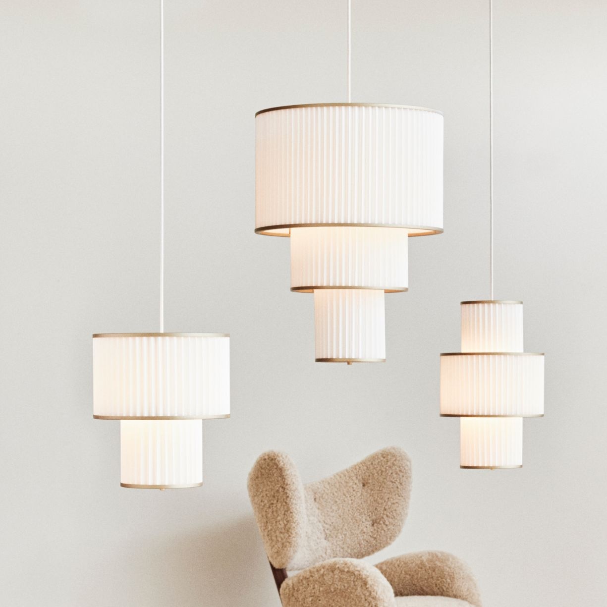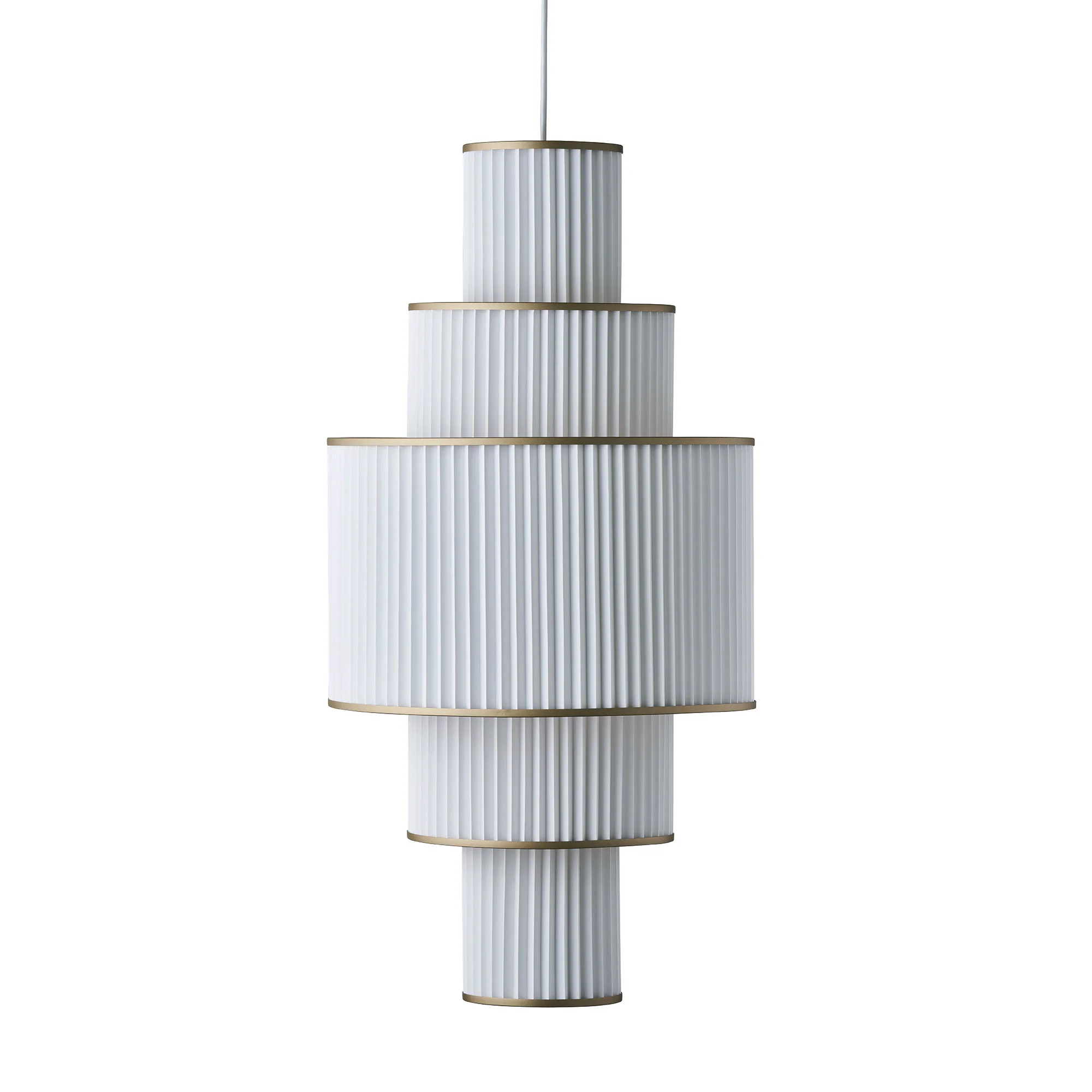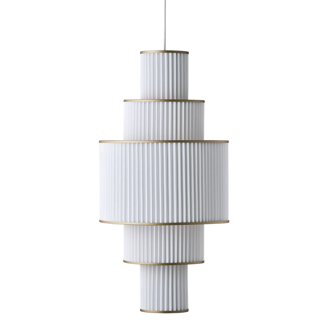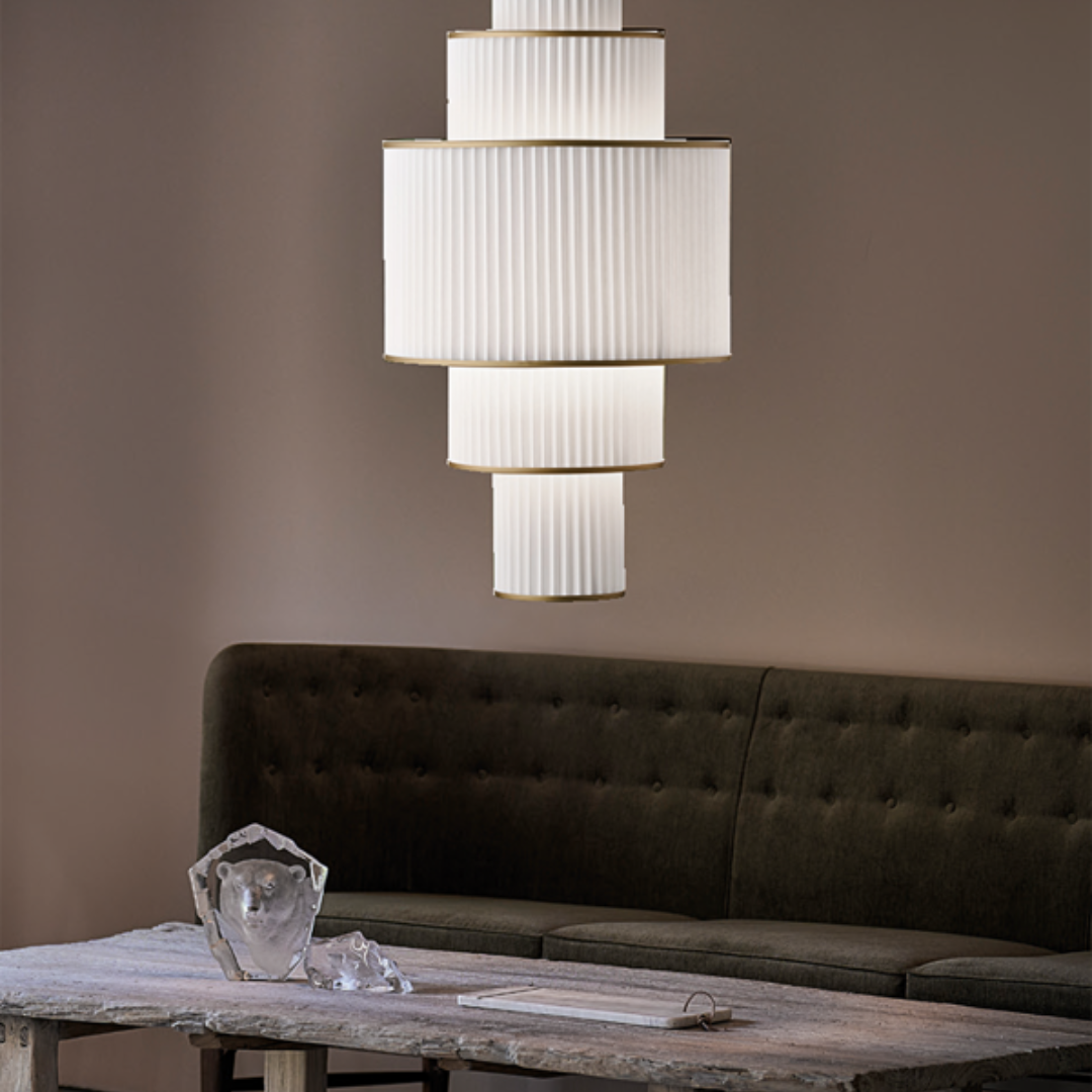 De lamp Plivello is een ontwerp van Christian Troels uit 2022, en deze verwijst naar de klassieke kristallen kroonluchters - maar i.p.v kristal zijn deze vervangen voor het hier zijn de kristallen vervangen door de kenmerkende papieren plooien van Le Klint.