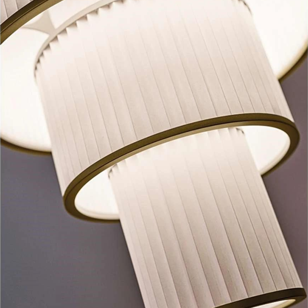 De kap van de Plivello bestaat uit meerdere niveaus, en doet ook denken aan art deco-kroonluchter, met goudkleurige ringen die elke laag scheiden en een extra vleugje elegantie en verfijning aan het ontwerp toevoegen.