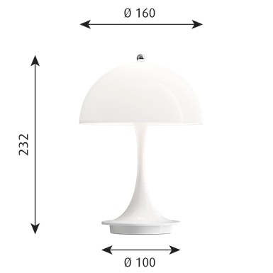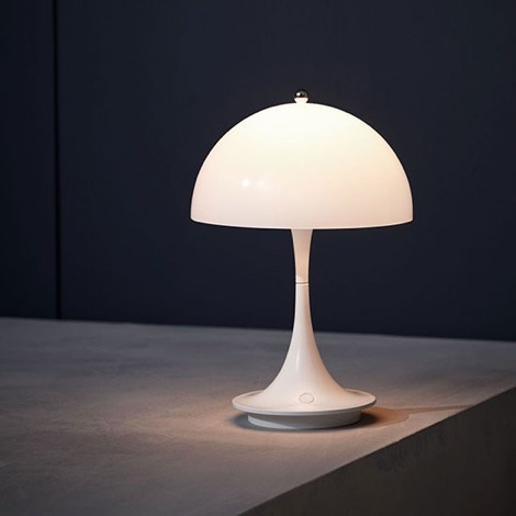 De handige Panthella Portable is beschikbaar in klassiek opaal acryl en maakt het genieten van zowel zijn design als zijn lichtkwaliteit des te makkelijker doordat de lamp van via USB kan worden opgeladen.