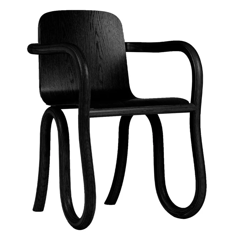 Deze unieke stoel is gebaseerd op tegenstellingen: de ‘chaos’ van het organische frame en ‘reden’, wat je weer tegen komt in de vorm van de eenvoudige platte zitting.