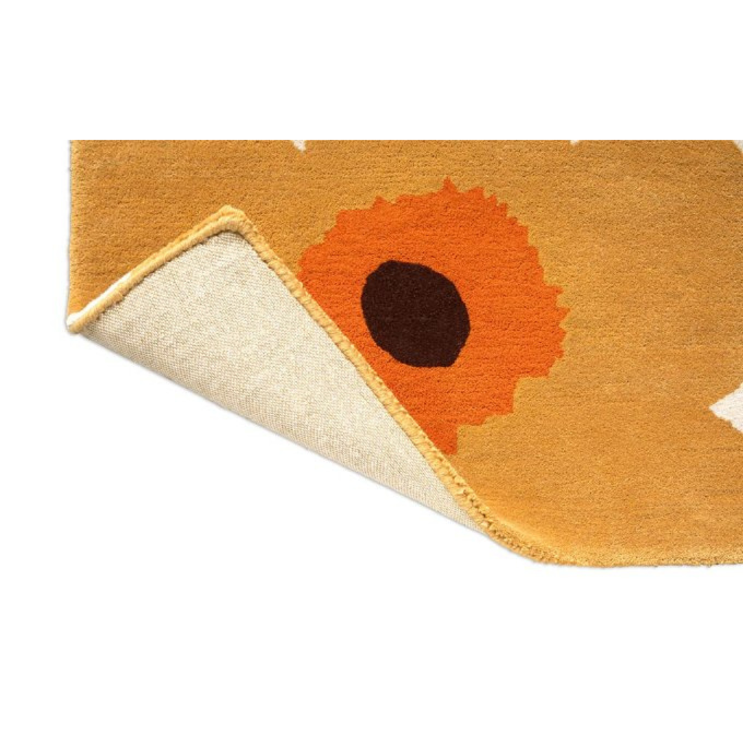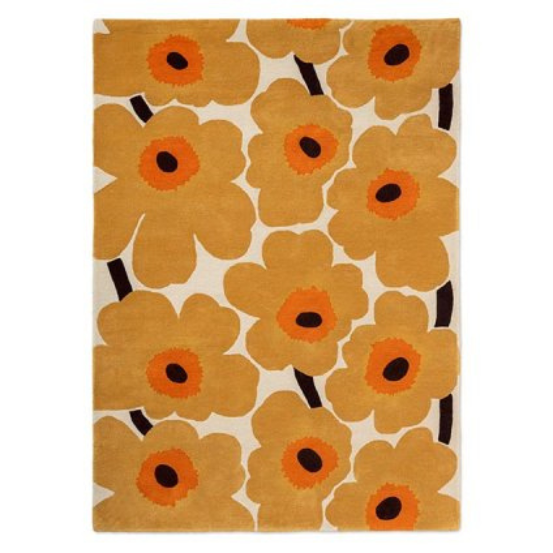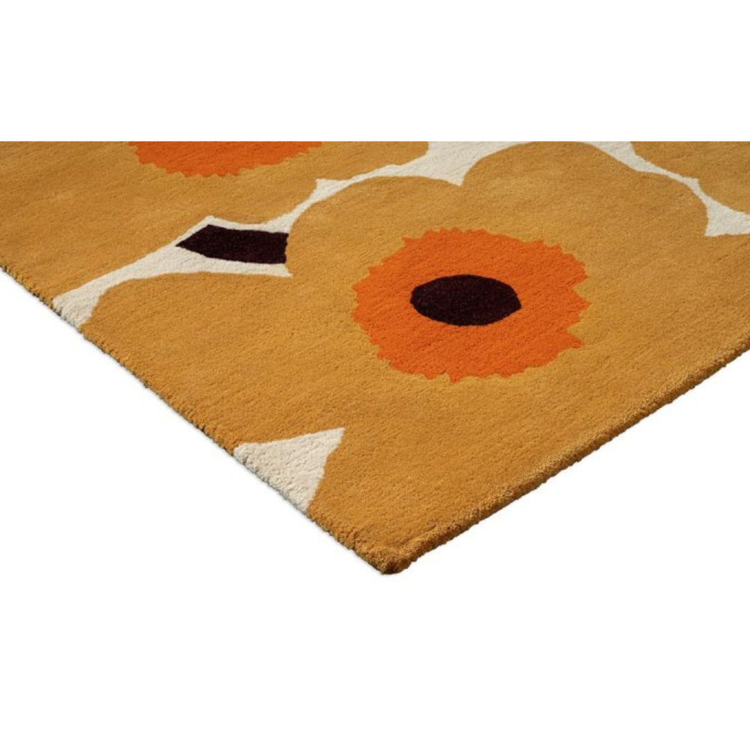 Dit Marimekko-tapijt is gemaakt in samenwerking met de kwalitatieve hoge nederlandse tapijtmaker Brink & Campman dit Marimekko-tapijt is met de hand getuft van Nieuw-Zeelandse wol met een opvallend, feloranje kleurenpalet. Of het nu in uw slaapkamer of woonkamer wordt gelegd, het Unikko-tapijt belooft uw huis te voorzien van warmte, het is als een klaproos veld midden in uw huis!