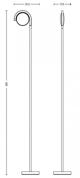 De Marselis Vloerlamp heeft een afmeting van 17.5 centimeter breed, 126 centimeter hoog en 21.2 centimeter diep. Het snoer is 200 centimeter lang en is bij beide varianten in de kleur zwart.