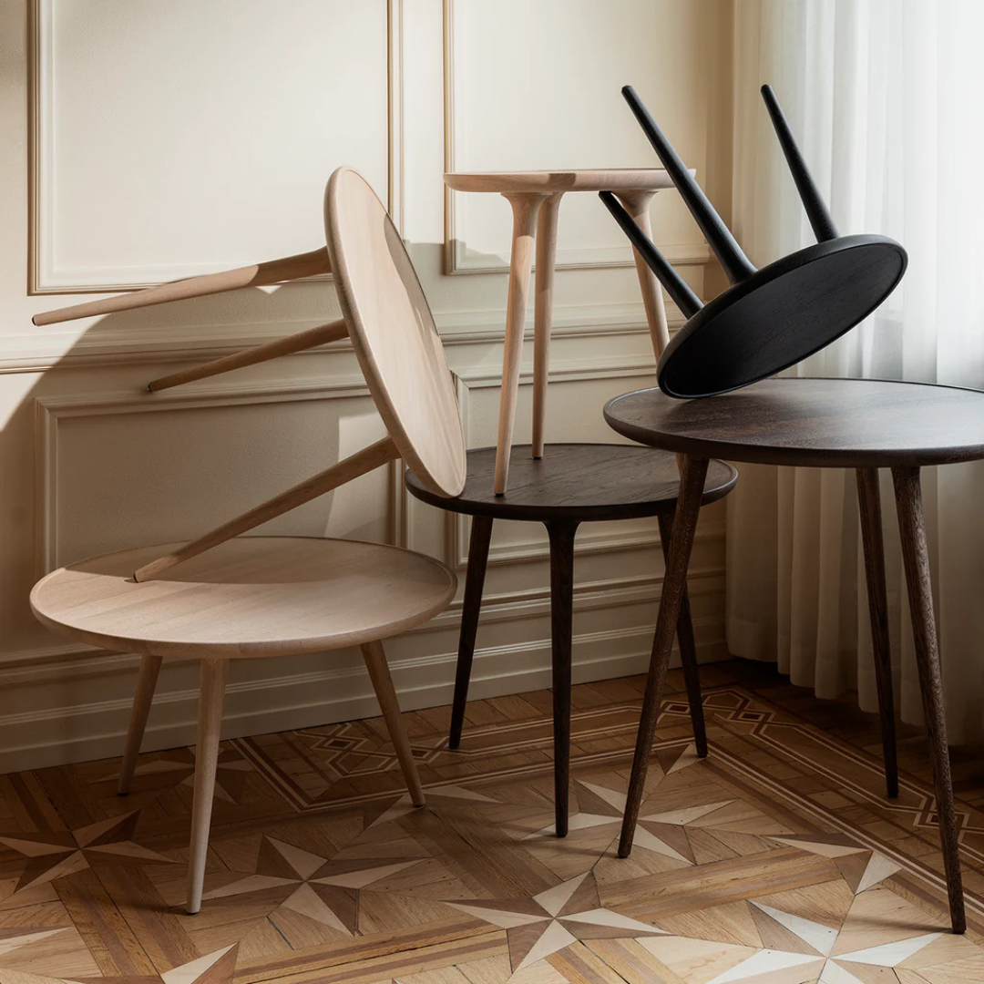De Mater Accent serie is ontworpen door het Deense architectenduo Space Copenhagen en combineert het sculpturale met handgemaakte esthetiek. In navolging van de als zeer succesvolle bekendstaande Mater High Barkruk 2009, bestaat de Accent-collectie uit vier salontafels (s, m, l en xl) en een grotere ovale salontafel en een ronde eettafel in 2 formaten.