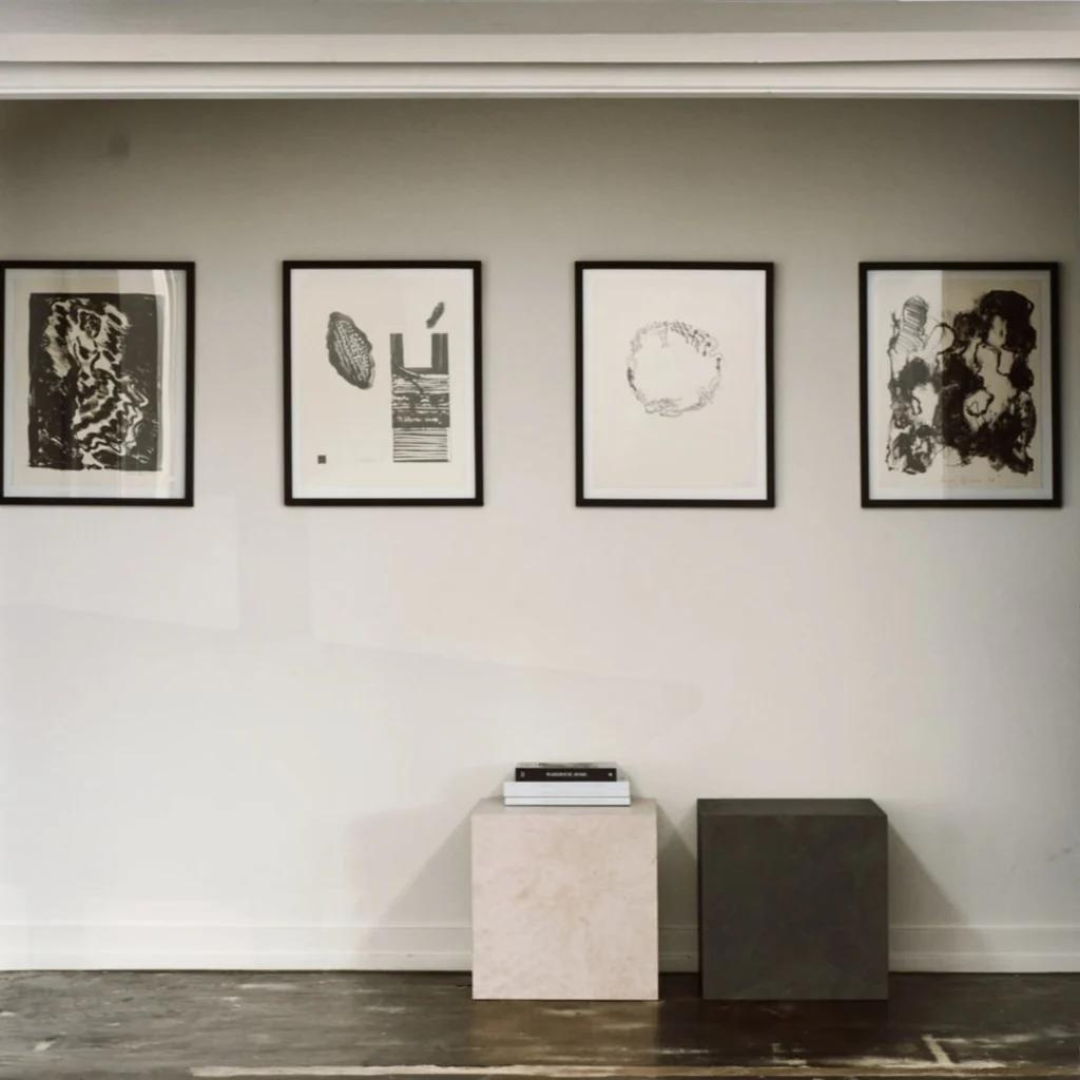 B 45 cm x D 45 cm x H 45 cm. Kleuren: licht, zwart en grijs.