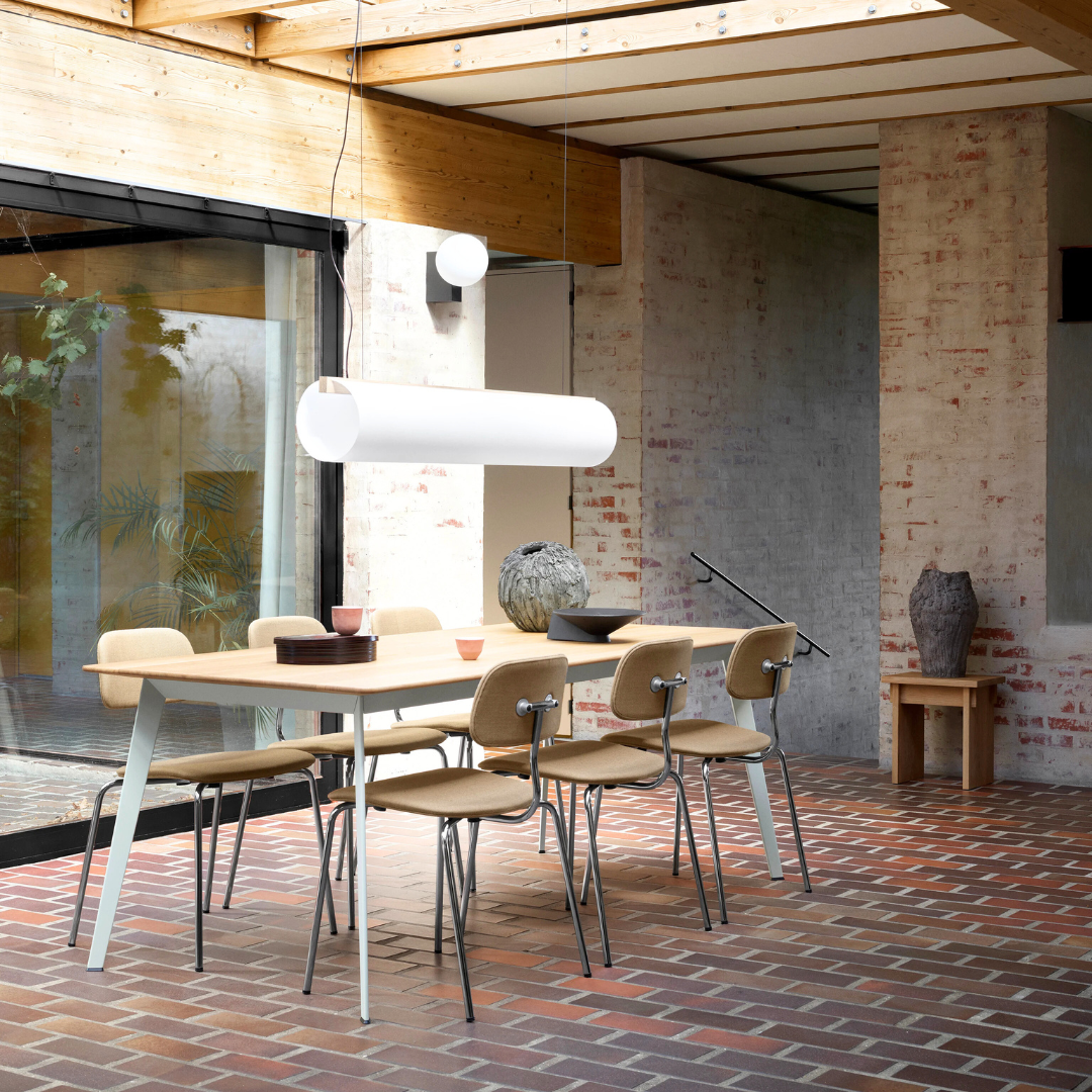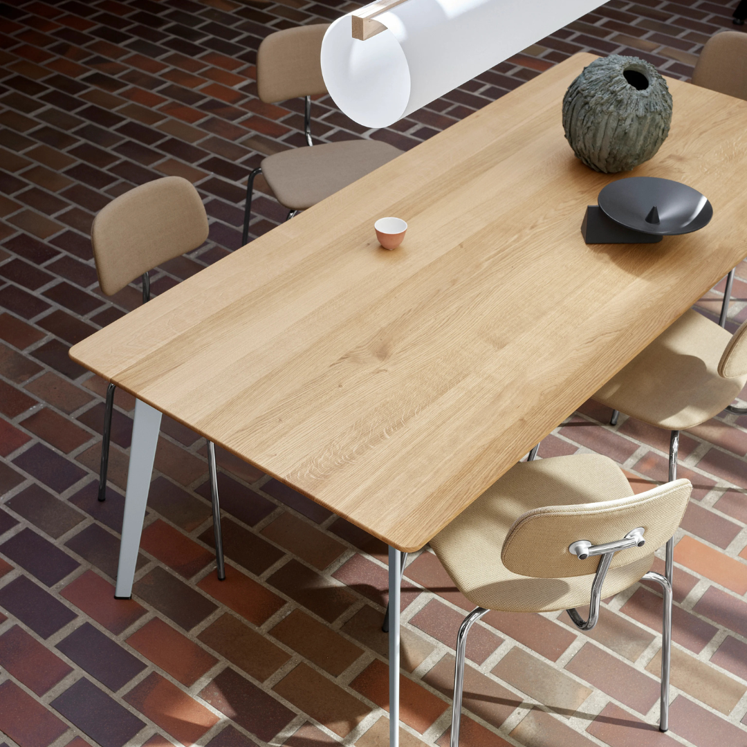 Door het simplistische ontwerp, het strakke stalen frame en het gladde houten oppervlak is de structuur van de stoel zowel stevig als licht. De comfortabele zitting is perfect geschikt voor uiteenlopende doeleinden: als eetkamerstoel bij u thuis, of aan het bureau, rond vergadertafels en in cafés.