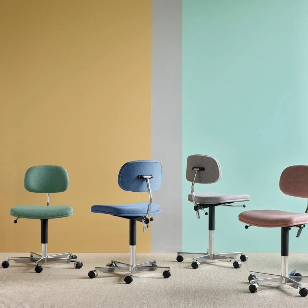 Met de uitvinding van de dubbel-wielige onderstel werd de stoel al snel een internationaal succes. Nu na 60 jaar beschikbaar in de hedendaagse kleuren van Montana!