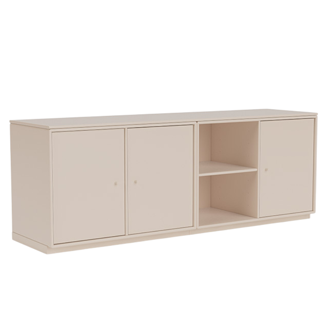 Het Montana Save dressoir bestaat uit drie kasten met deur, daarachter bevindt zich een verstelbare legplank en verder 2 open compartimenten. De Save dressoir staat op slanke stalen poten die de kast elegant en luchtig maken. De Save dressoir is gemaakt van gelakt MDF en beschikbaar in veel mooie Montana kleuren, zo ook het onderstel. De lak is slijtvast, krasvast en dus duurzaam.