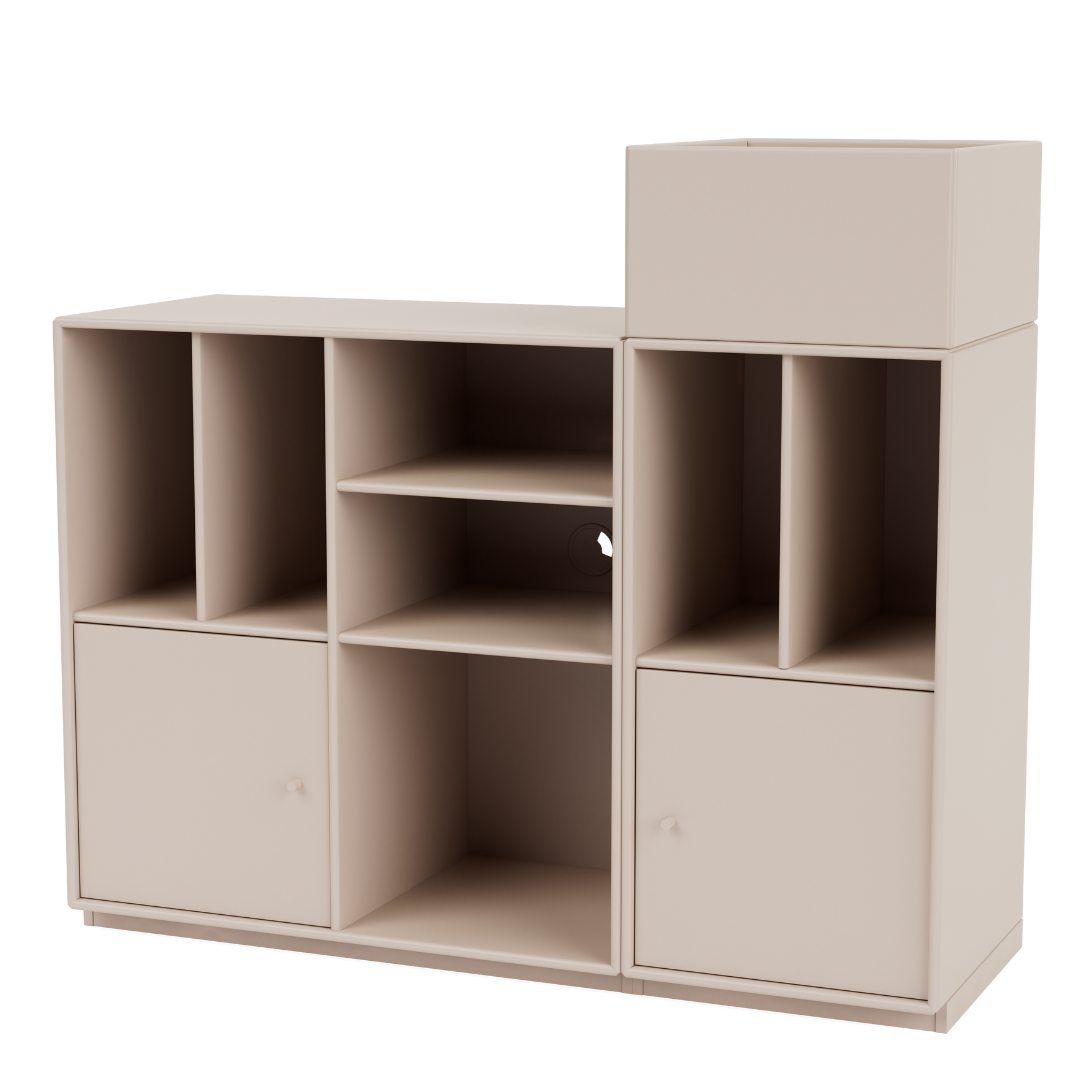 Montana's innovatieve SPIN-assortiment is gemaakt om zijn functionaliteit en esthetische aantrekkingskracht in de loop van de tijd te behouden. Een subtiel maar belangrijk detail is de opname van kabeldoorgangen in het ontwerp, waardoor u zich kunt onderdompelen in een tastbare geluidservaring zonder het gedoe van in de war rakende kabels. Het assortiment is verkrijgbaar in alle 41 Montana-kleuren en is gecertificeerd door het Deense Binnen klimaatlabel en het officiële EU Ecolabel.