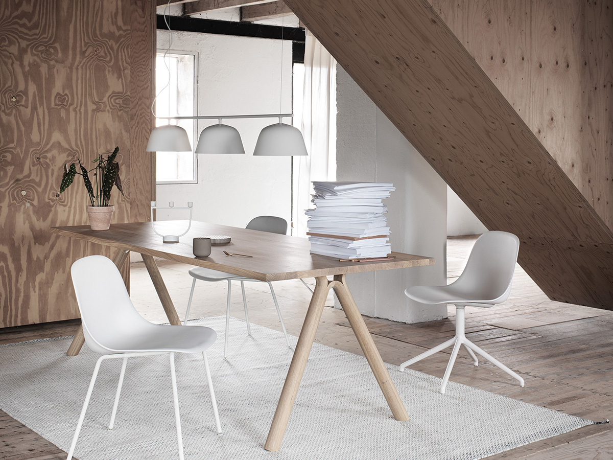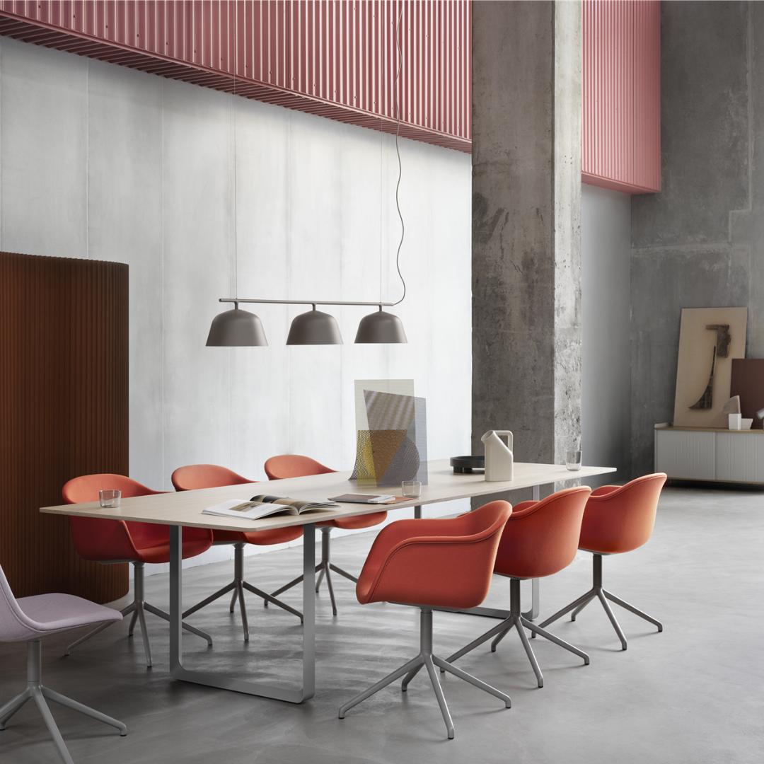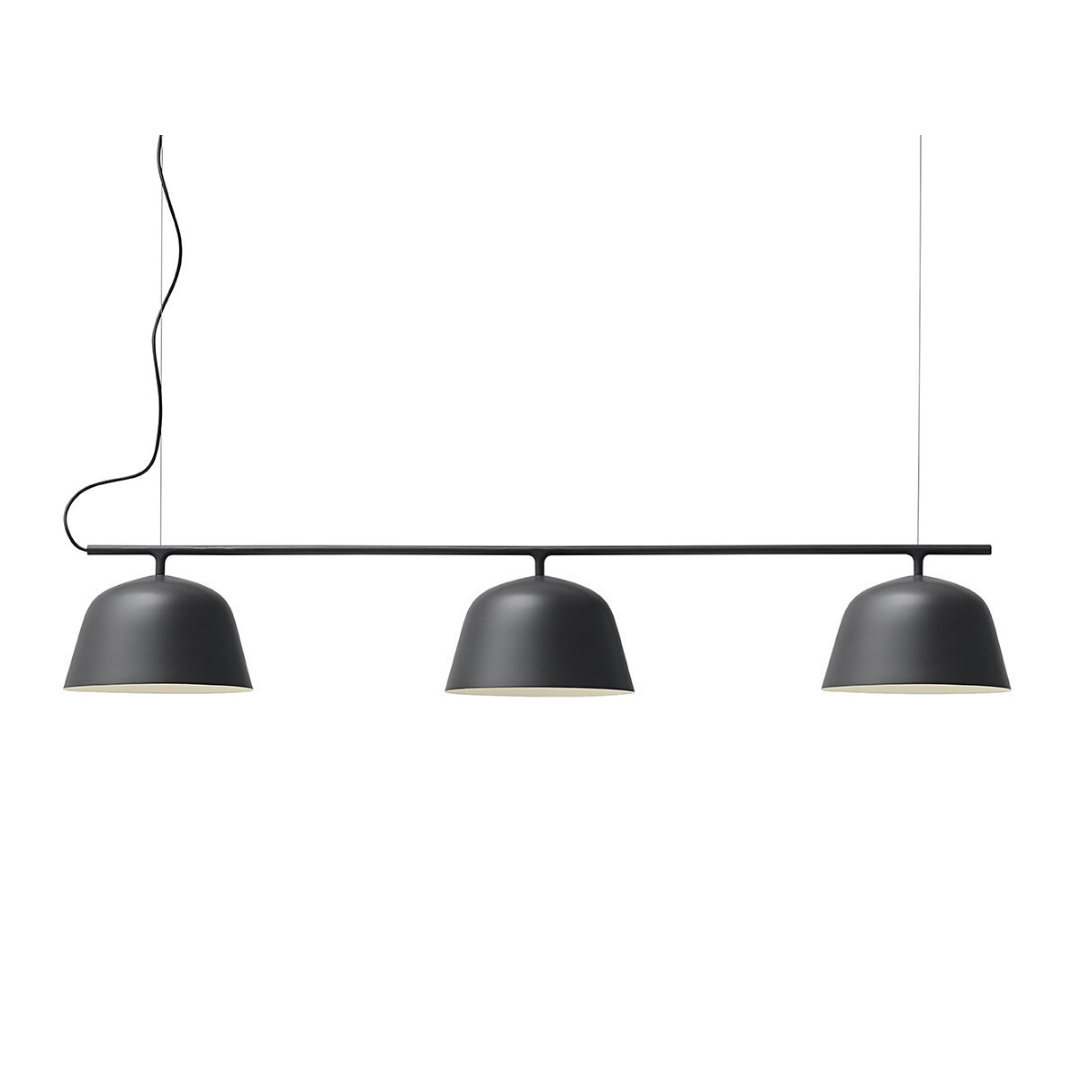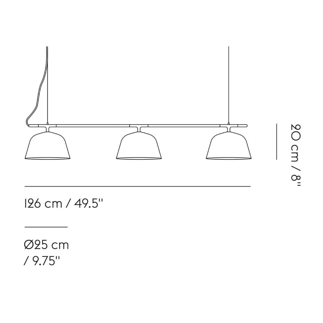 De Ambit hanglamp is een modern en tijdloos ontwerp en heeft een echt Scandinavische uitstraling. Deze minimalistische hanglamp past echt in elke woonstijl en is beschikbaar in mooie rustieke kleuren. De buitenkant van de hanglamp staat in mooi contrast met de wit gelakte binnenkant van de kap die zorgt voor maximaal en warm licht. Deze lichtrail met 3 lichtbronnen is onderdeel van de Muuto Ambit collectie met hanglampen in verschillende formaten en ook een Ambit wandlamp.