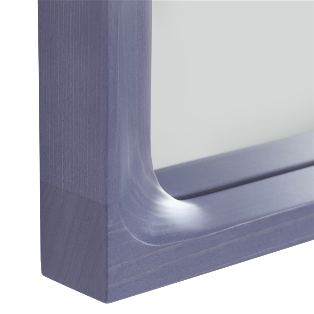 De spiegel is behandeld met een houtbeits kleur en afgewerkt met een heldere, matte lak die het natuurlijke karakter en de nerf van het sparrenhout naar voren brengt. Verkrijgbaar in drie kleuren: lichtgrijs, lichtgroen en licht lila, elk met een aparte en unieke uitstraling. Ondanks twee formaten voor de Arced spiegel is elke spiegel zowel verticaal als horizontaal op te hangen, en zo kunt u de mooiste composities maken.
