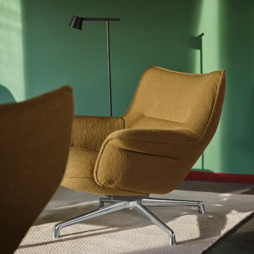 Een nieuwe variant van de moderne en minimalistische Muuto Doze lounge stoel, dit keer met een lage rugleuning en met behoud van alle comfort, beschikbaar in veel mooie stofopties en de voet is beschikbaar in een swivel of tube voet.